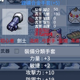 『道具名稱』:50等10攻3力2敏劍士手套