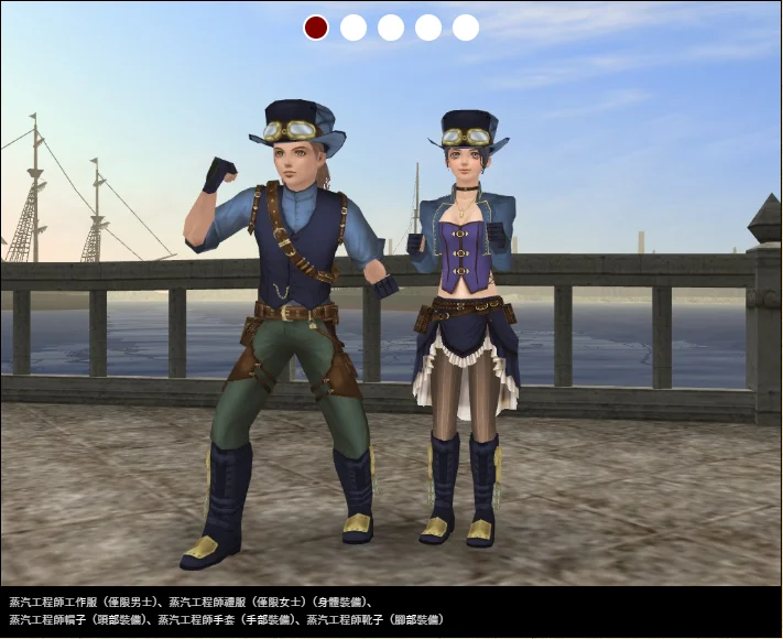 蒸汽技師的工作套裝(男) or 蒸汽技師的裙裝套裝(女),共四件。