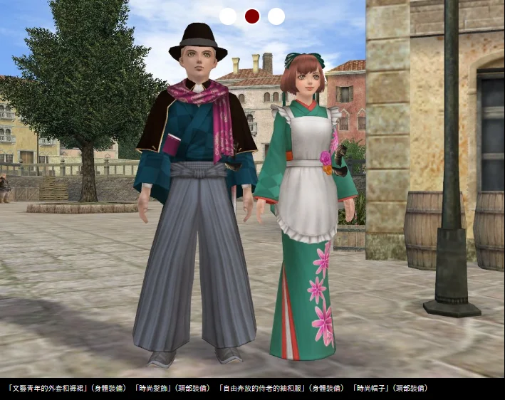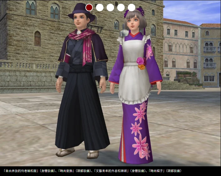時髦的髮飾+奔放服務員的和服,共二件。