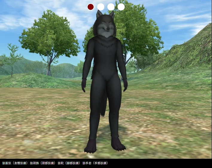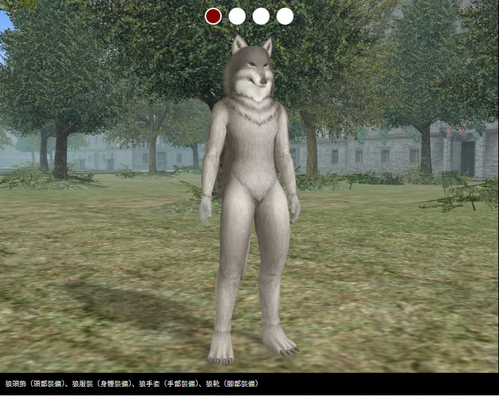 狼形頭飾+狼形人偶服+狼形手套+狼形靴,共四件。