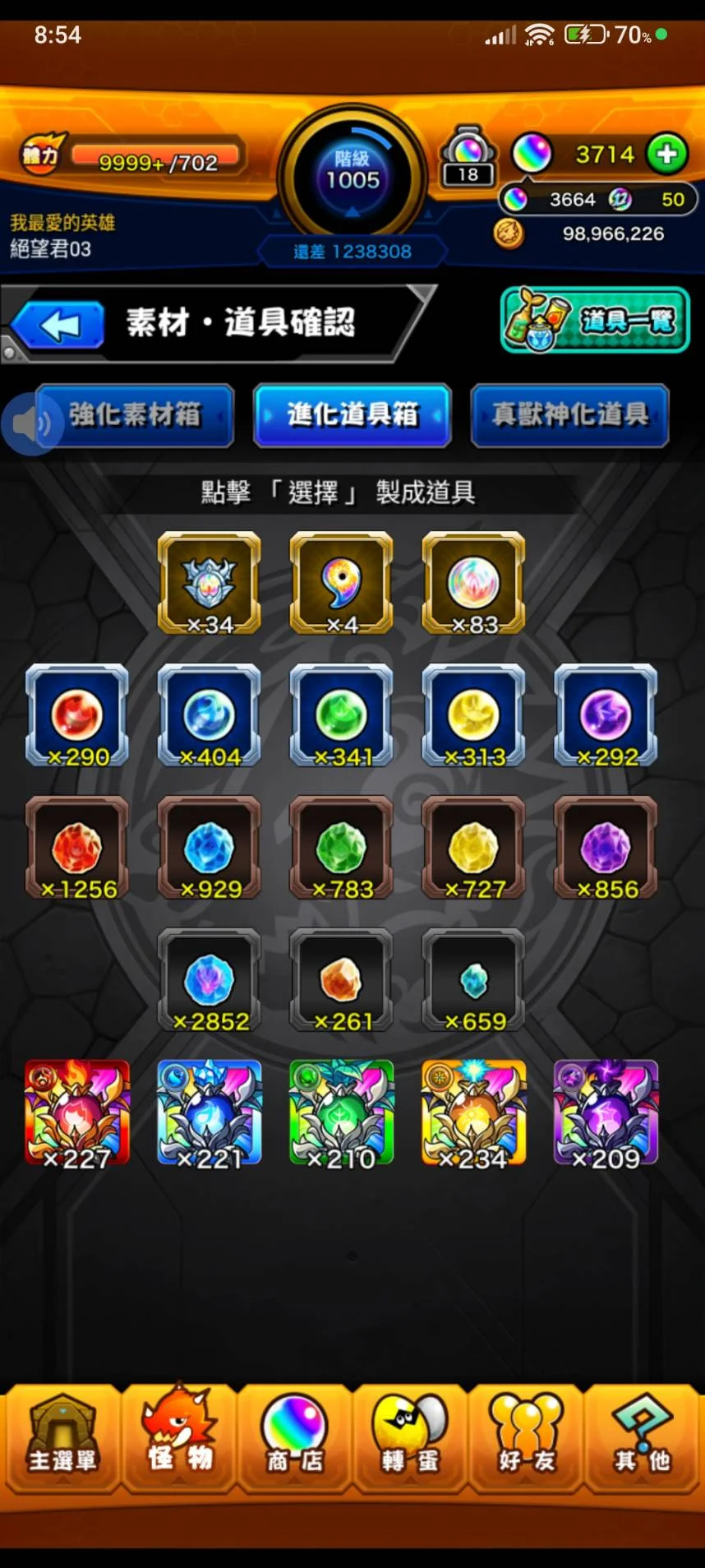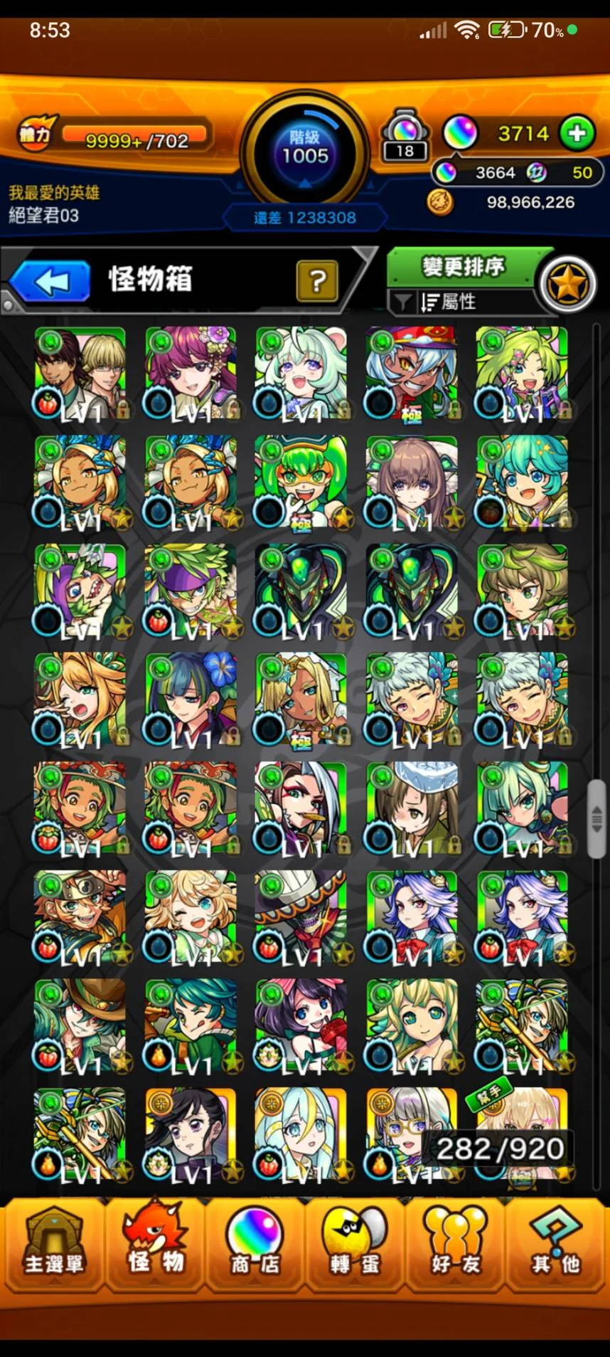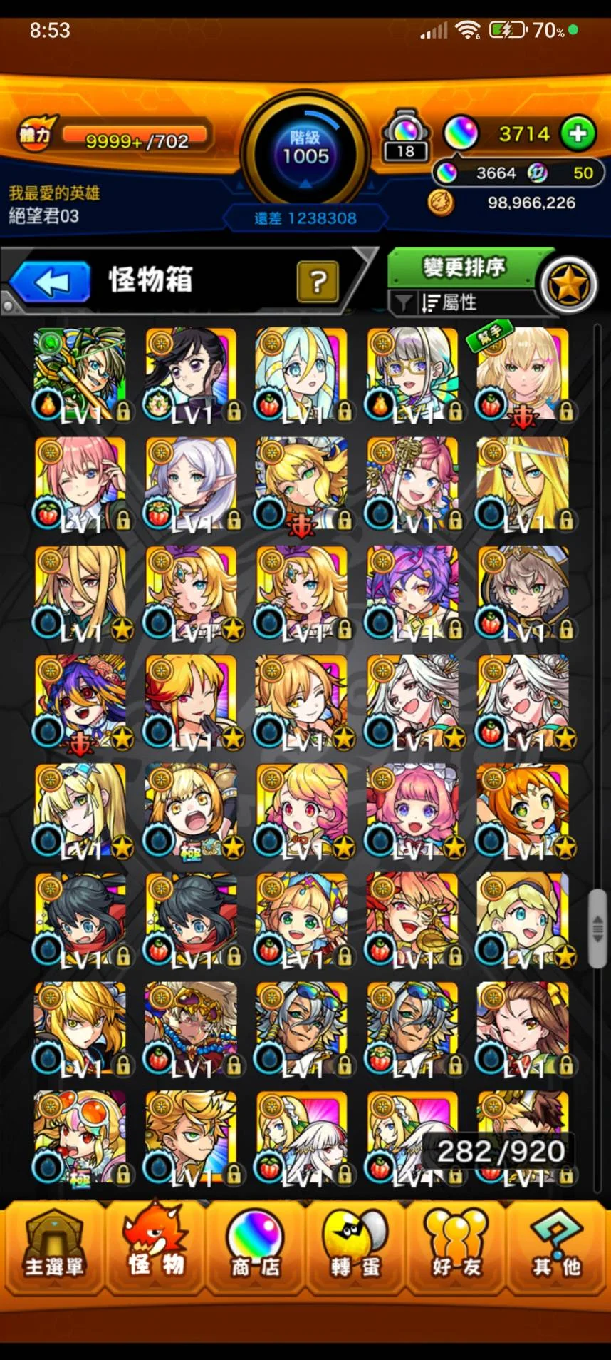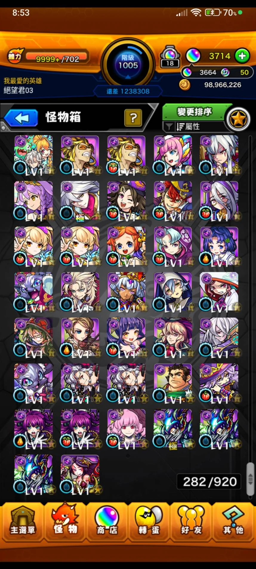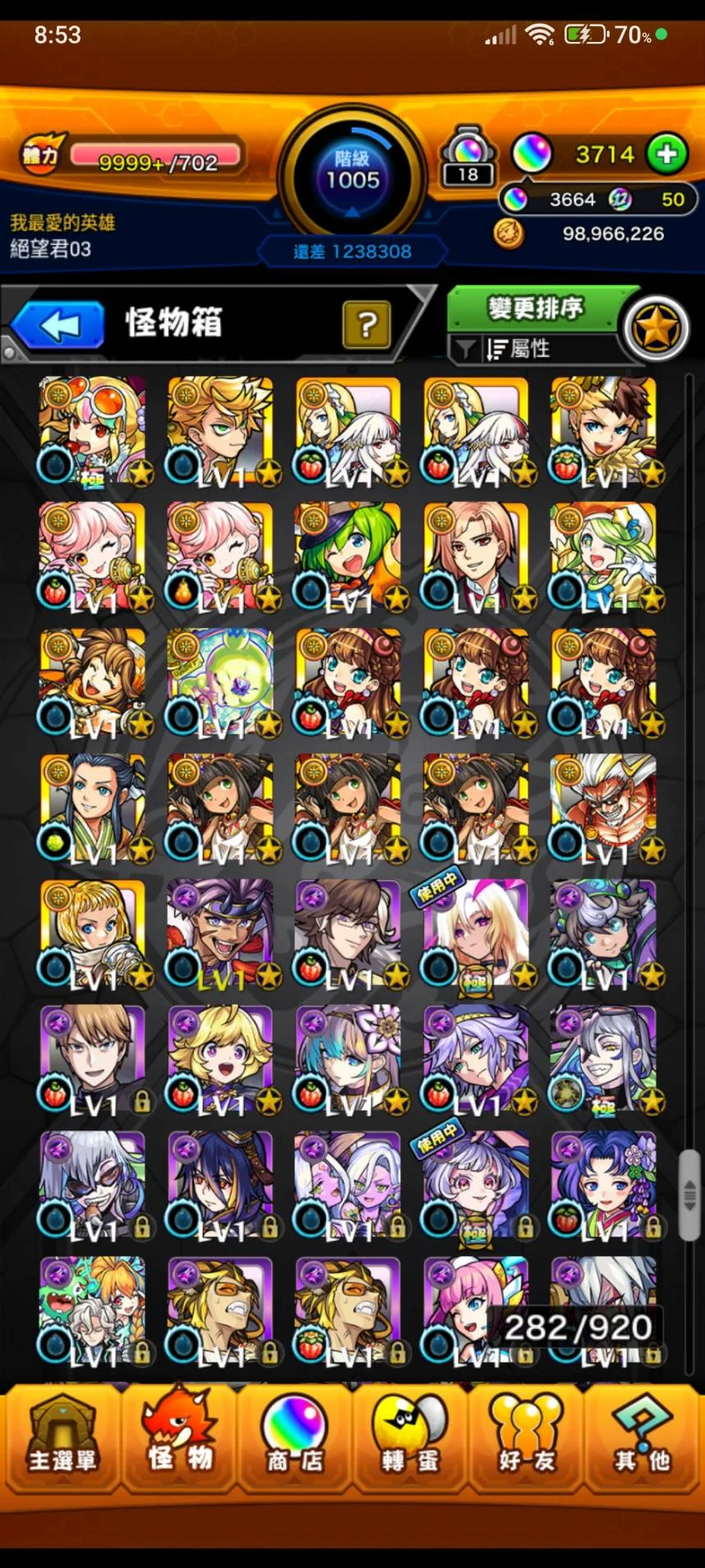 如題~等級1005等 寶珠3664顆(12月12日更新~)