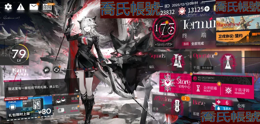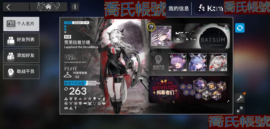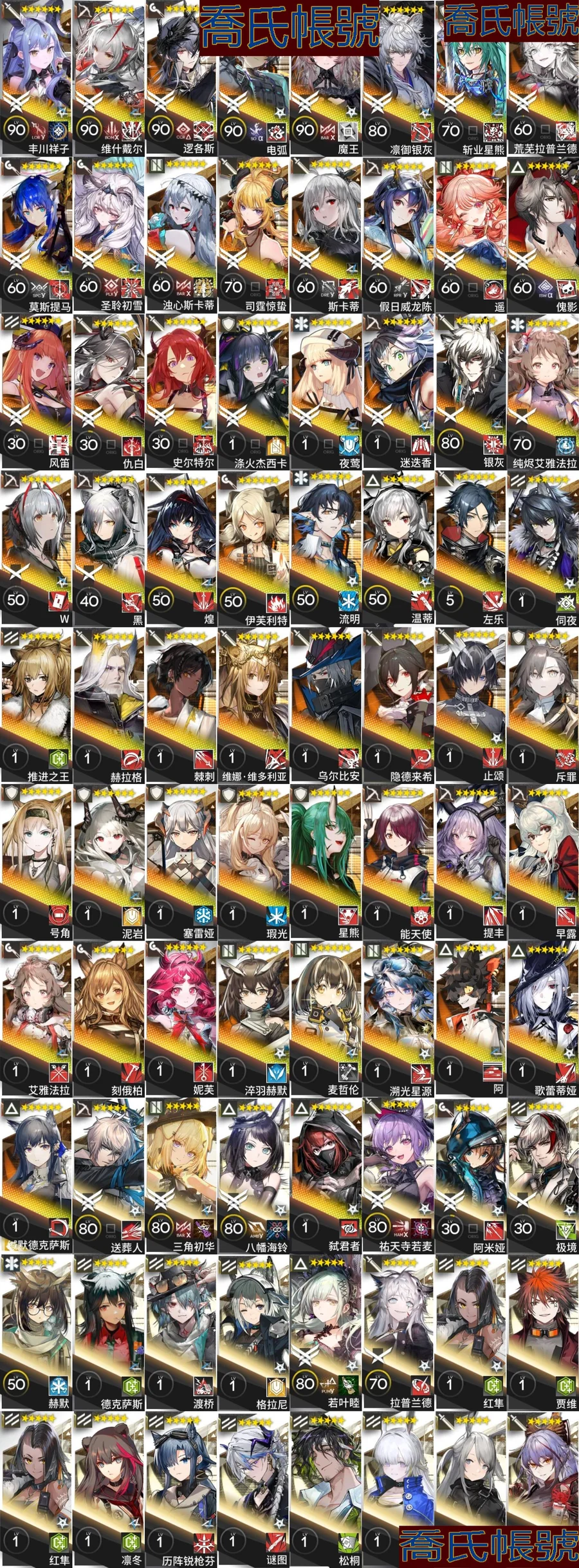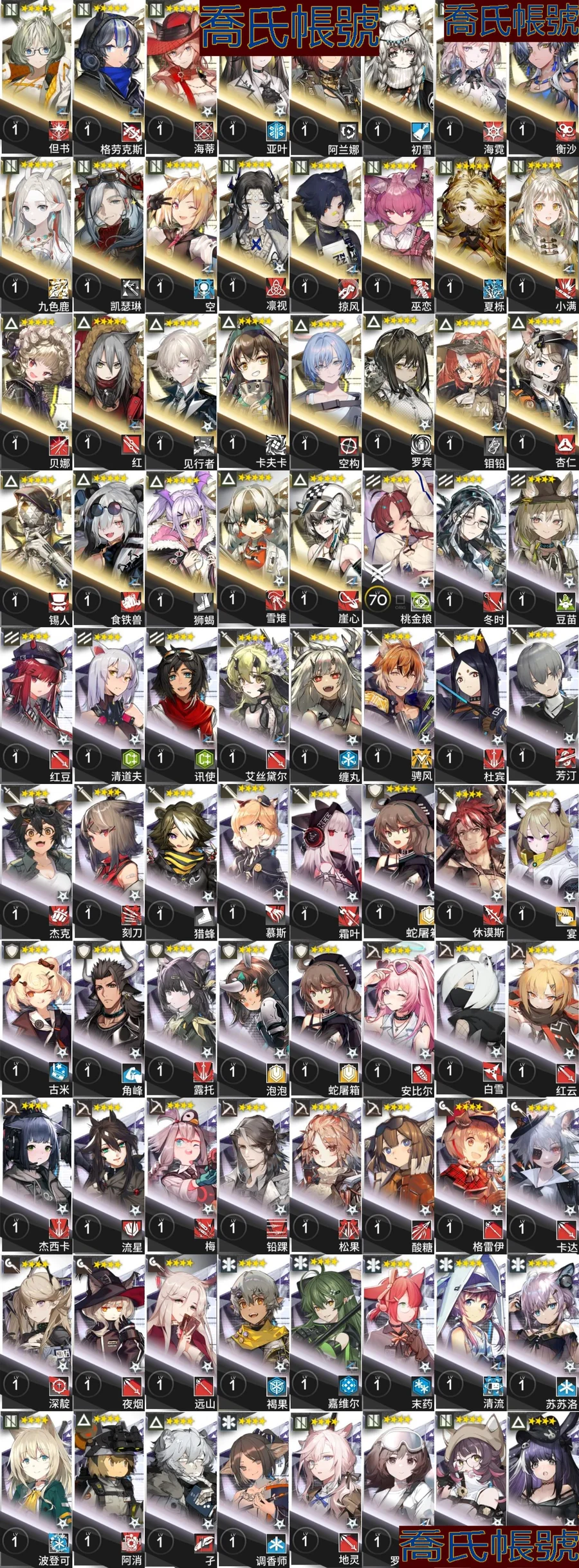 【OBMFICP076242】79級,58六星,22精二,4精一,合成玉數量:13125,源石數量:84,聯動幹員數量:6,時裝數量:52,精二六星:迷迭香,夜鶯,傀影,斯卡蒂,司霆驚蟄,遙,滌火傑西卡,凜御銀灰,莫斯提馬,邏各斯,仇白,史爾特爾,電弧,斬業星熊,風笛,假日威龍陳,魔王,聖聆初雪,荒蕪拉普蘭德,濁心斯卡蒂,豐川祥子,維什戴爾;精一六星:純燼艾雅法拉,銀灰,黑,W;六星幹員:迷迭香,夜鶯,傀影,斯卡蒂,司霆驚蟄,遙,滌火傑西卡,凜御銀灰,莫斯提馬,邏各斯,仇白,史爾特爾,電弧,斬業星熊,風笛,假日威龍陳,魔王,聖聆初雪,荒蕪拉普蘭德,濁心斯卡蒂,豐川祥子,維什戴爾,純燼艾雅法拉,銀灰,黑,W,流明,隱德來希,斥罪,左樂,赫拉格,泥岩,瑕光,維娜·維多利亞,止頌,伺夜,塞雷婭,推進之王,溫蒂,號角,烏爾比安,棘刺,能天使,早露,妮芙,溯光星源,弒君者,淬羽赫默,刻俄柏,阿,艾雅法拉,歌蕾蒂婭,星熊,麥哲倫,緘默德克薩斯,提豐,伊芙利特,煌;聯動幹員:若葉睦,八幡海鈴,祐天寺若麥,三角初華,豐川祥子,九色鹿;時裝:夏日餮宴·水月,焦點·傀影,恍惚·W,旋律的主人·豐川祥子,月下執行者·八幡海鈴,籠中歌者·三角初華,悠然假日HD71·寒檀,情熱魔術師·祐天寺若麥,提線的本我·若葉睦,悠然假日HD29·安比爾,糖果暴擊·奧達,礫瓦·泥岩,相位面容·錫人,主修領域·地靈,北地引路人·提豐,下一頓午茶·斯卡蒂,繪聲繪影·深海色,喜夜侍者·澄閃,正義締造者·野鬃,偽裝·宴,無痕行者·安德切爾,海岸救援改裝·Lancet-2,縱身一躍·傑克,安息處的怪盜·卡達,靜謐午夜DN04·特米米,夏卉FA026·蘇蘇洛,荒原行者·普羅旺斯,古堡清潔專家·阿消,霜息·赫默,八音蛋匠人·格雷伊,夢魘之夢·傀影,意志·德克薩斯,除魅·莫斯提馬,馭浪WR04·斯卡蒂,皇后一號·風笛,歲紅霞·陳,幽靜·白麵鴞,典雅噩兆·拉普蘭德,無題密令·送葬人,小鬼當家·暗索,威塞克斯的信件·玫蘭莎,十字郡·芬,悠然假日HDm06·安賽爾;【官方賬號】