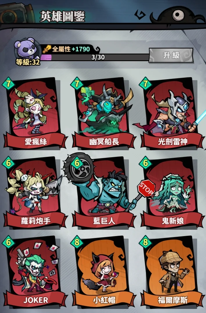 101伺服器 主隊戰力109萬 很多高突英雄+各種時裝+金門突9:鬼關羽、毒刺、拳鬼、雷射俠、炎龍機甲突8:聖天使突7:霜愈法師、君王法師、愛瘋絲、孫悟空、幽冥船長、光劍雷神突6:鬼新娘、小丑、藍巨人、蘿莉炮手
