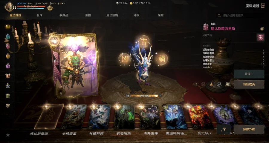 【娃娃收藏】: 收集卡片(69.57%)、完成收藏品(49.63%)