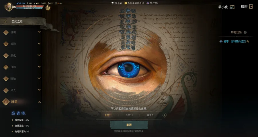 【素質】:血量35,360、攻/命397/601(12/16更新)、防/魔防554/451、減傷/PVP減傷198/60、暈命/抗暈26/134%