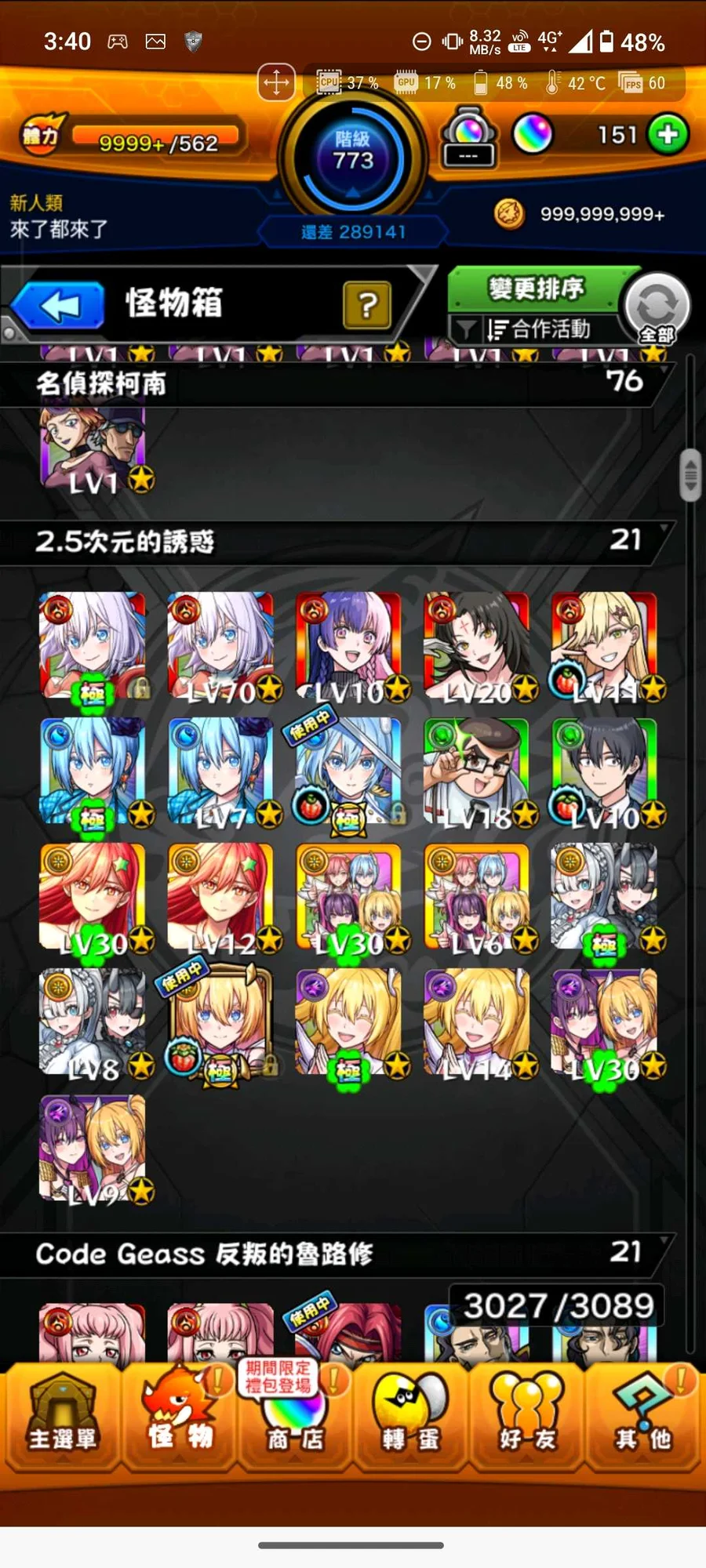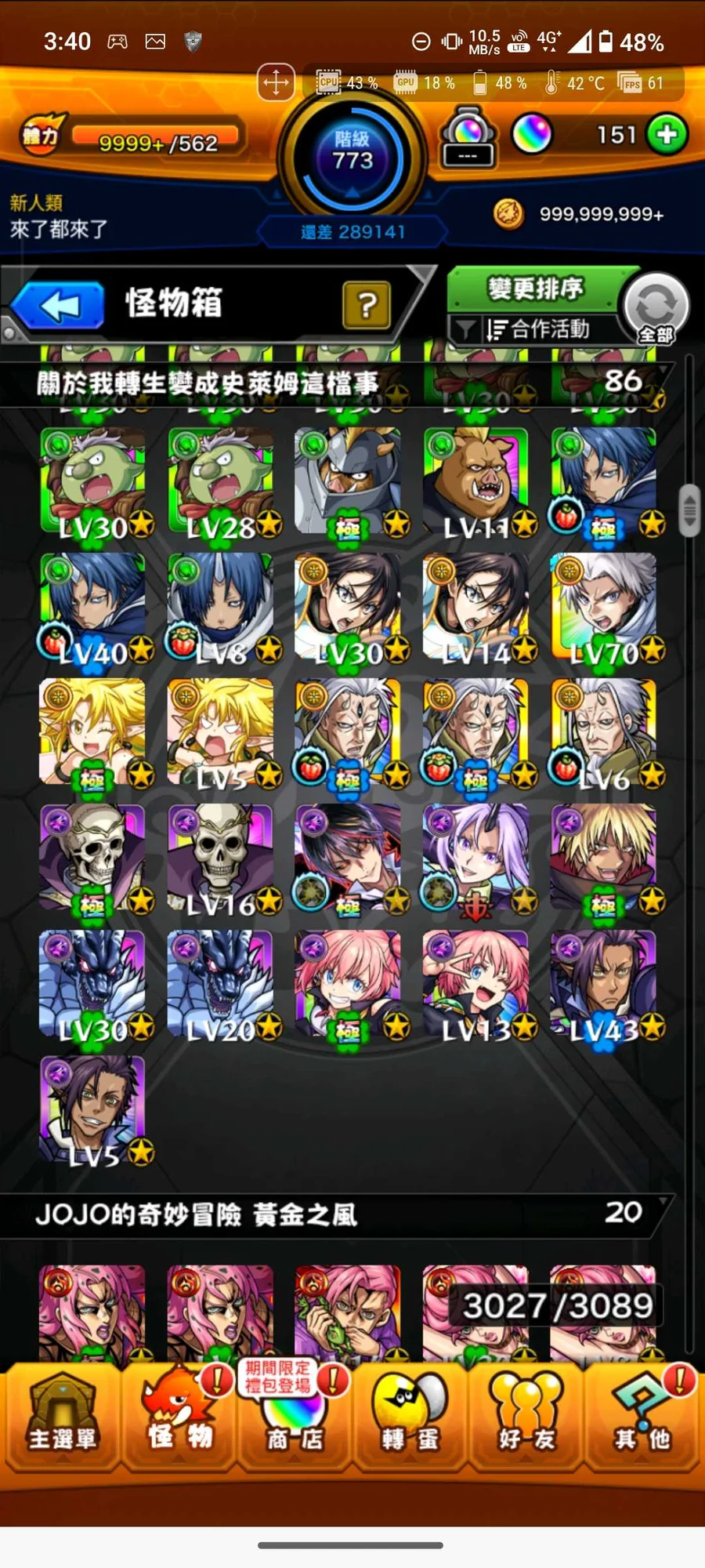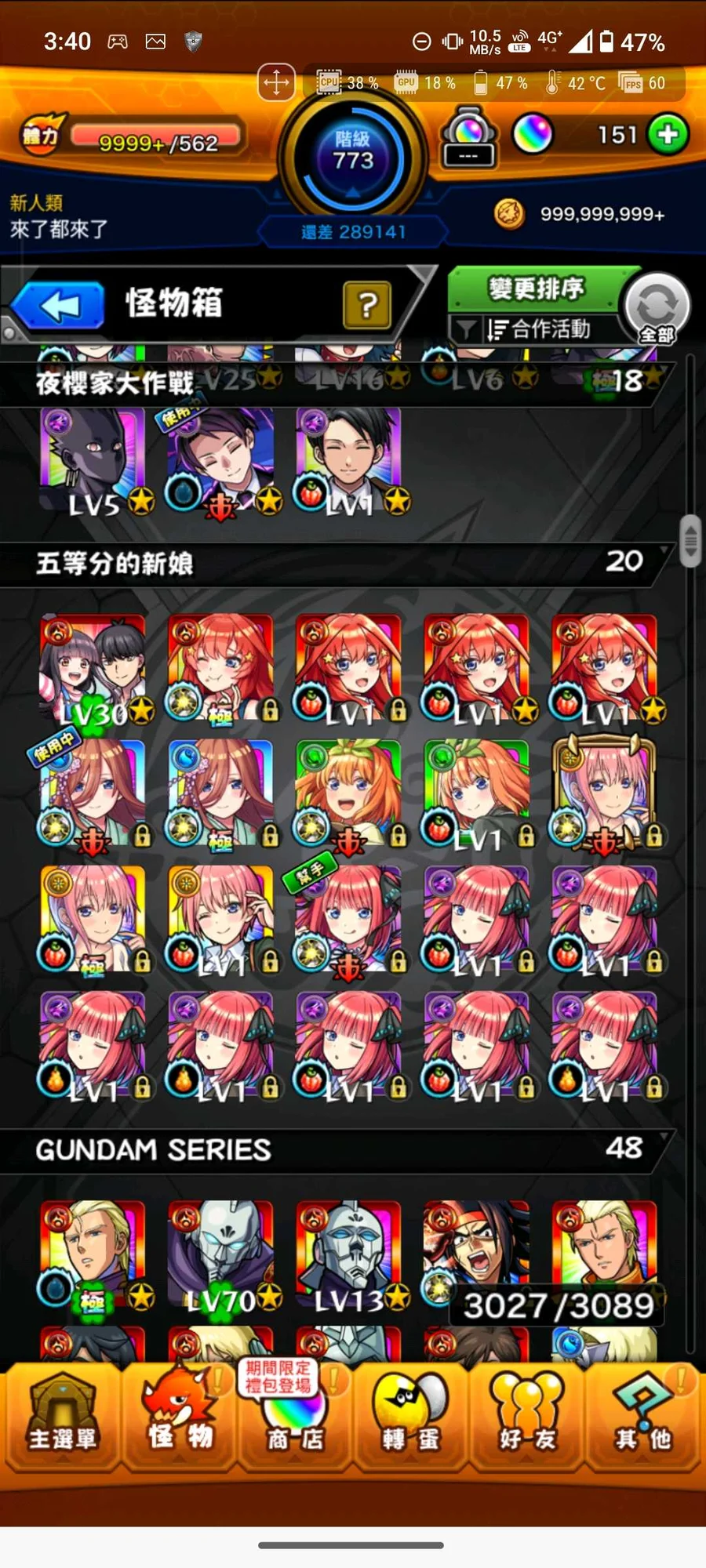 【773等】多合作 多限定 新鬼滅 膽大黨 五等分多角色全齊 還有寶珠可以挖1400多顆喔~