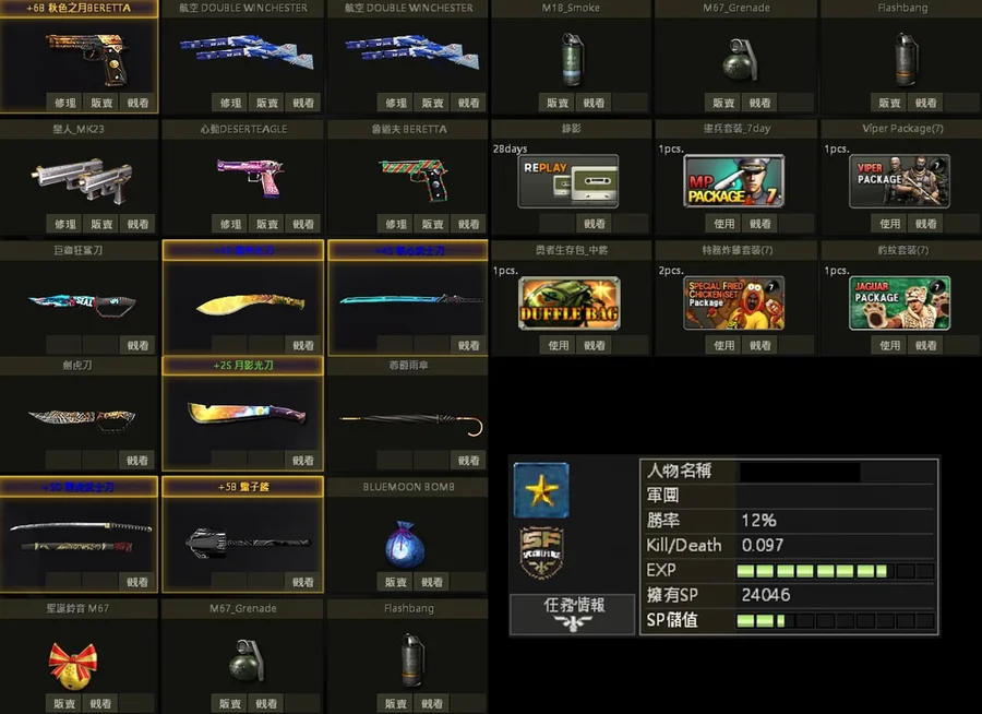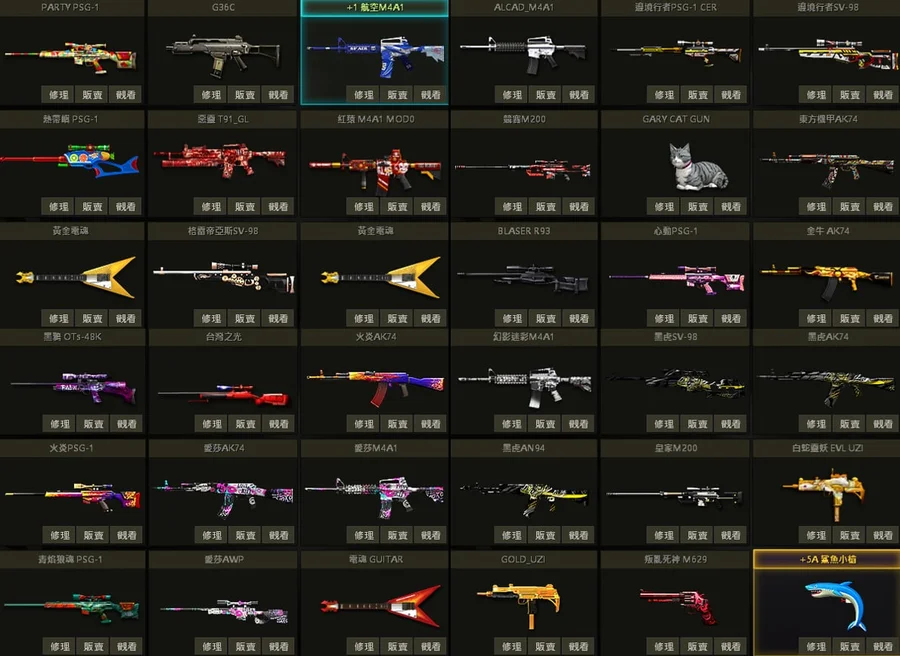 白金M14連狙、海神FN、灰貓咪、黃金電魂