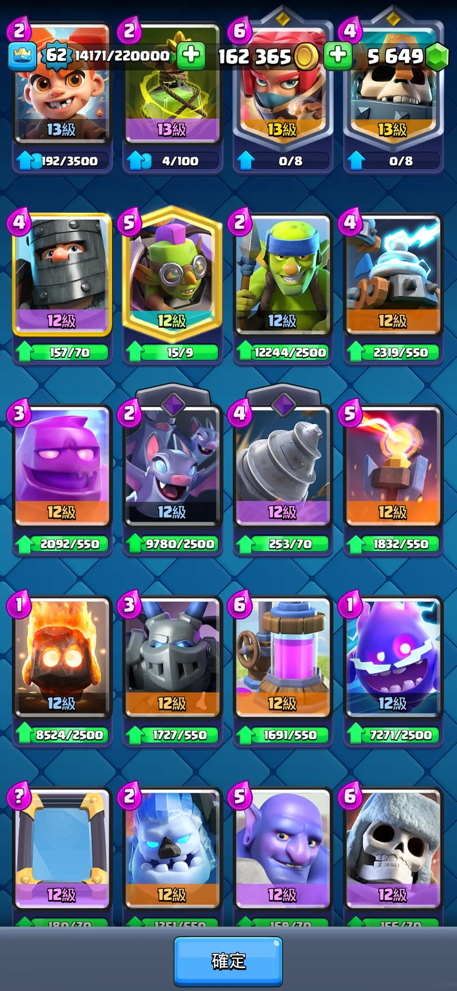 主練力量哥同款皮卡槌,整隊全15等以上,帳號有多寶石與進化卡,能夠組成各種你想得到的牌組。上15000杯毫無難度。可議價,綁定方式為supercell帳號,可以轉移給您的帳號。