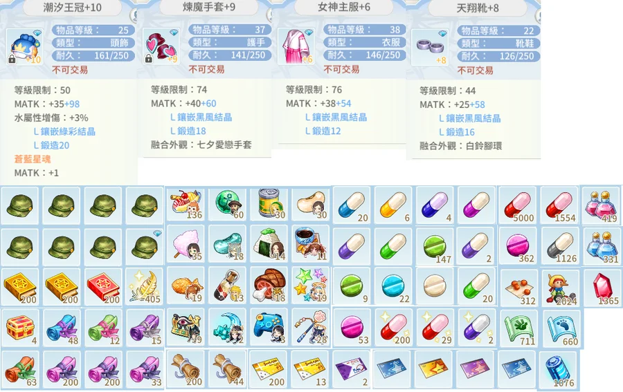 會一直玩到帳號售出為止故造型(只會多不會少)/結晶/書/淺能/經驗水等皆會浮動