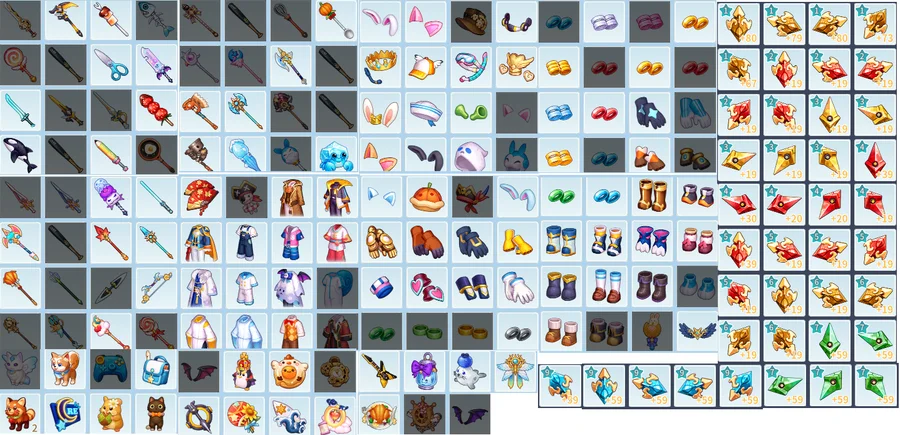 會一直玩到帳號售出為止故造型(只會多不會少)/結晶/書/淺能/經驗水等皆會浮動