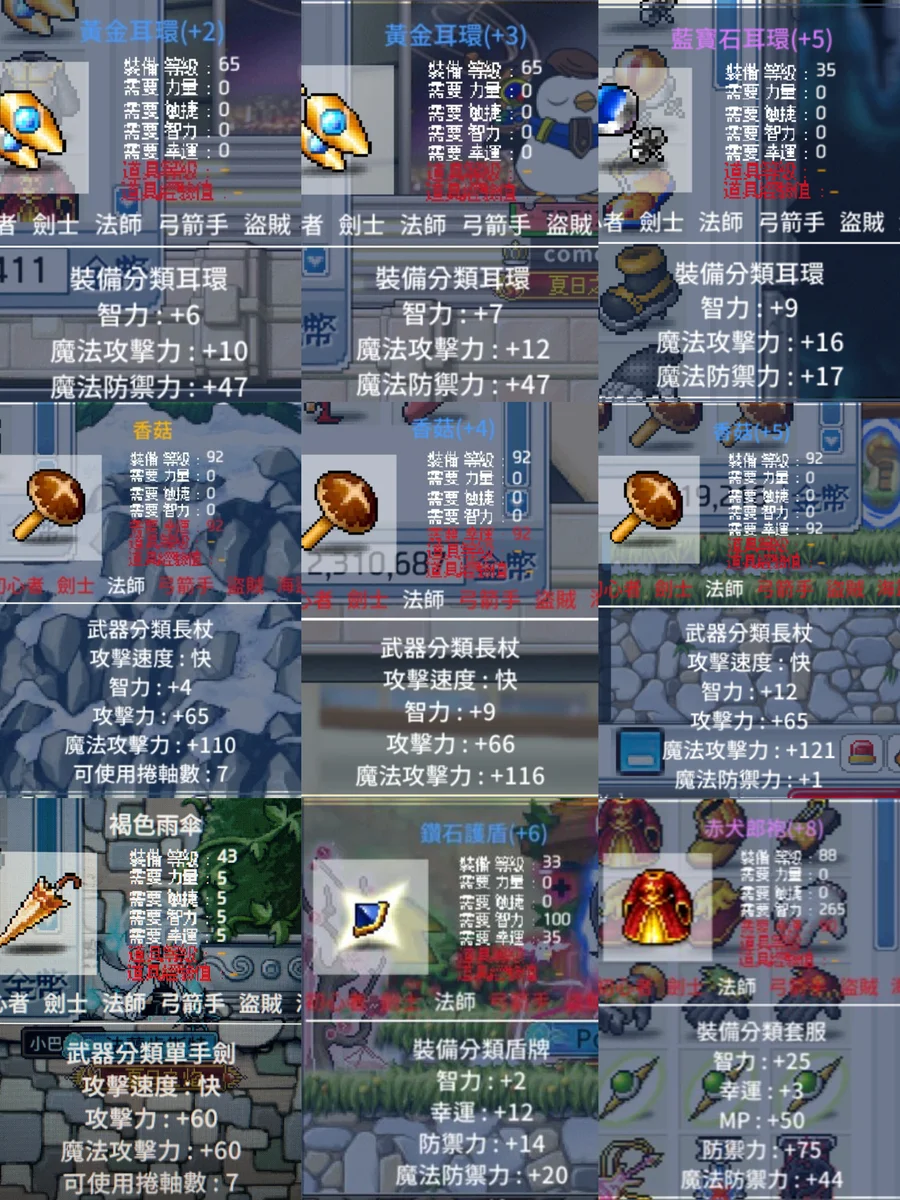 精選 平衡提升 | 🧙課長套餐 帽子:按等級頂屬成品 武器:黑色雨傘+14幸木盾 【手套/披風/套服/耳環/鞋】 五件套 共+58AP | 報價 |