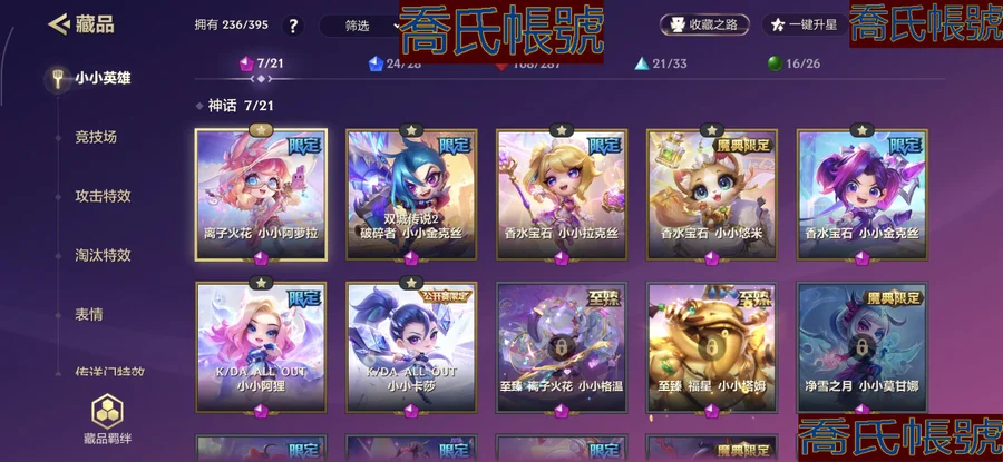 【OBJNIVD382942】段位:鑽石,神話小小英雄數7,小小英雄總數24,棋盤數量124,幻境繁華度3級,至臻級小小英雄:至臻香水寶石小小拉克絲;神話級小小英雄:香水寶石小小拉克絲,香水寶石小小金克絲,雙城傳說2破碎者小小金克絲;棋盤:月光奏鳴曲,魄羅糖果島,雲朵蛋糕島,春風校園,夜戰城樓,2024玉兔派對,鏟鏟市美食步行街,小月球,粽子節的大龍舟,竹林禪院,魄羅海島樂園,鯉魚花燈,粽子節2024競技場;