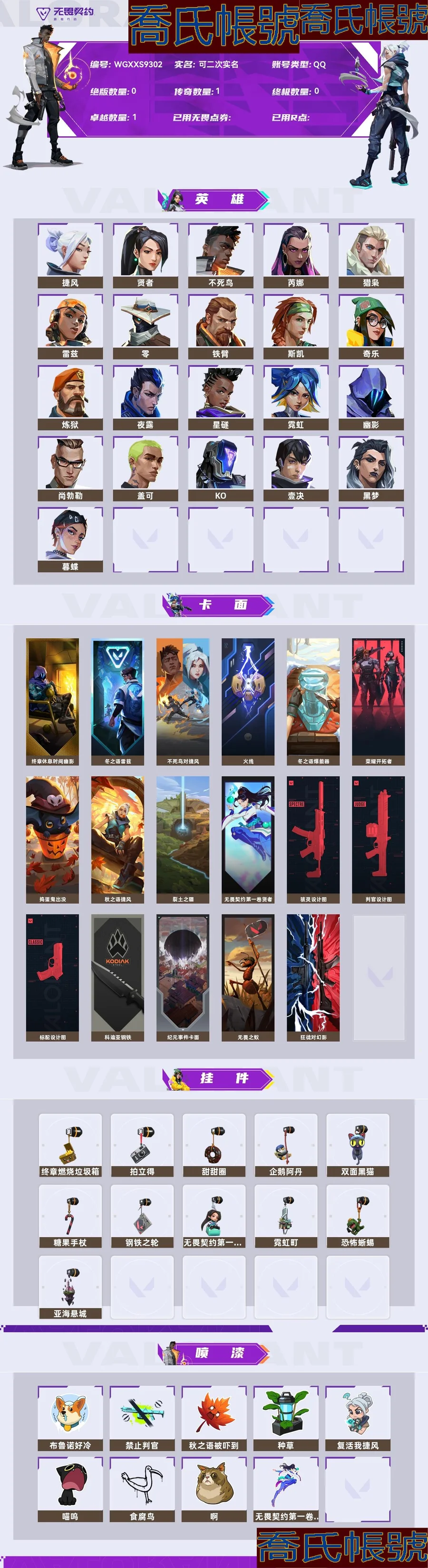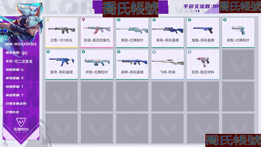 【OBWGXXS930242】Lv117|超凡II, 刀皮數量0,槍皮數量11(絕版0傳奇0終極1卓越1); 【槍皮】:幻影-781協議,狂徒-蓋亞的復仇,冥駒-紅鱗松葉,冥駒-異彩晶稜,鬼魅-異彩晶稜,標配-紅鱗松葉,駭靈-異彩晶稜,判官-紅鱗松葉,戰神-異彩晶稜,飛將-時裝,狂怒-航空材料;【熱門卡面】:終章休息時間幽影卡面,火線卡面,裂土之疆卡面,科迪亞鋼鐵卡面;【熱門掛飾】:終章燃燒垃圾箱掛飾,拍立得掛飾,雙面黑貓掛飾,糖果手杖掛飾,恐怖蜥蜴掛飾;【熱門噴漆】:種草噴漆,食腐鳥噴漆;【皮膚可能含有某些特權皮膚,具體以遊戲內實際擁有為準】