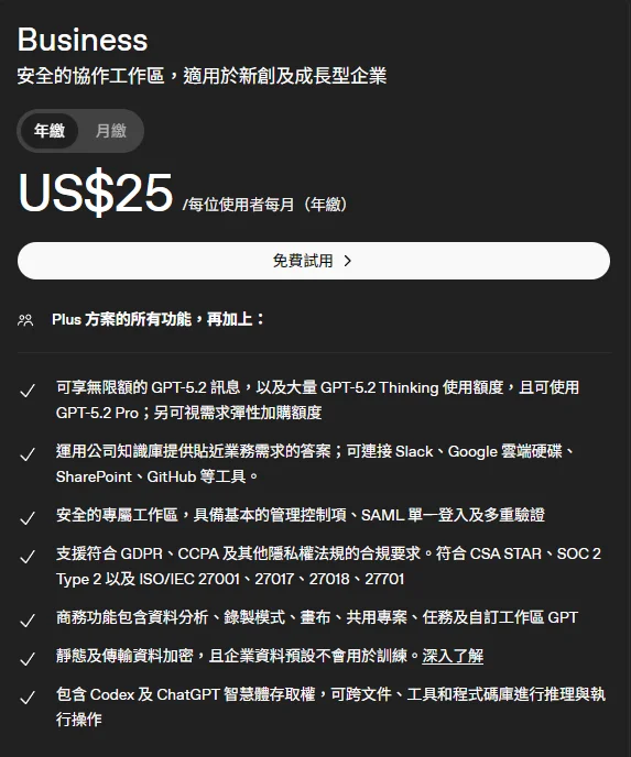 ChatGPT Business|使用額度高於Plus|無須給密碼,只須信箱