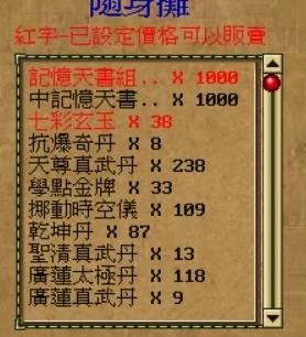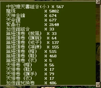 大量天書/無極武器/裝備/丹藥