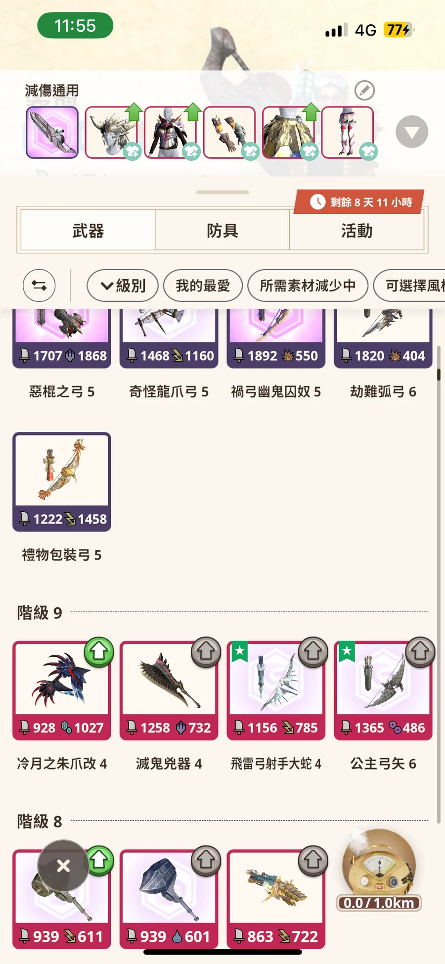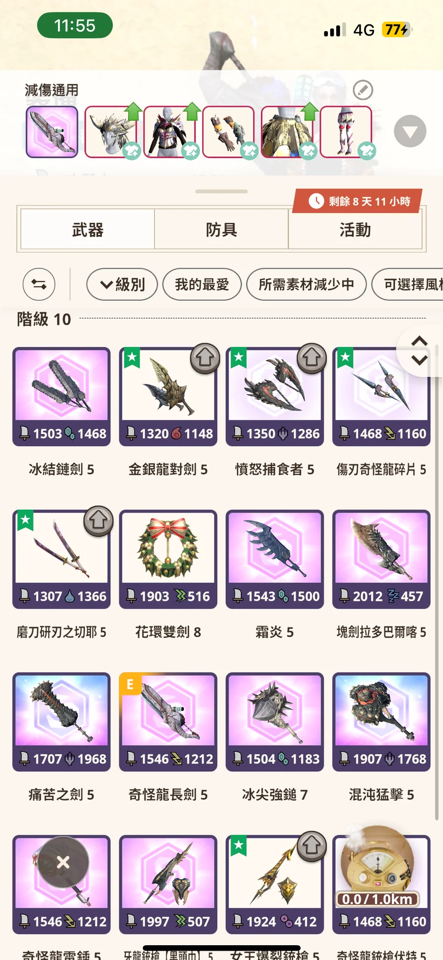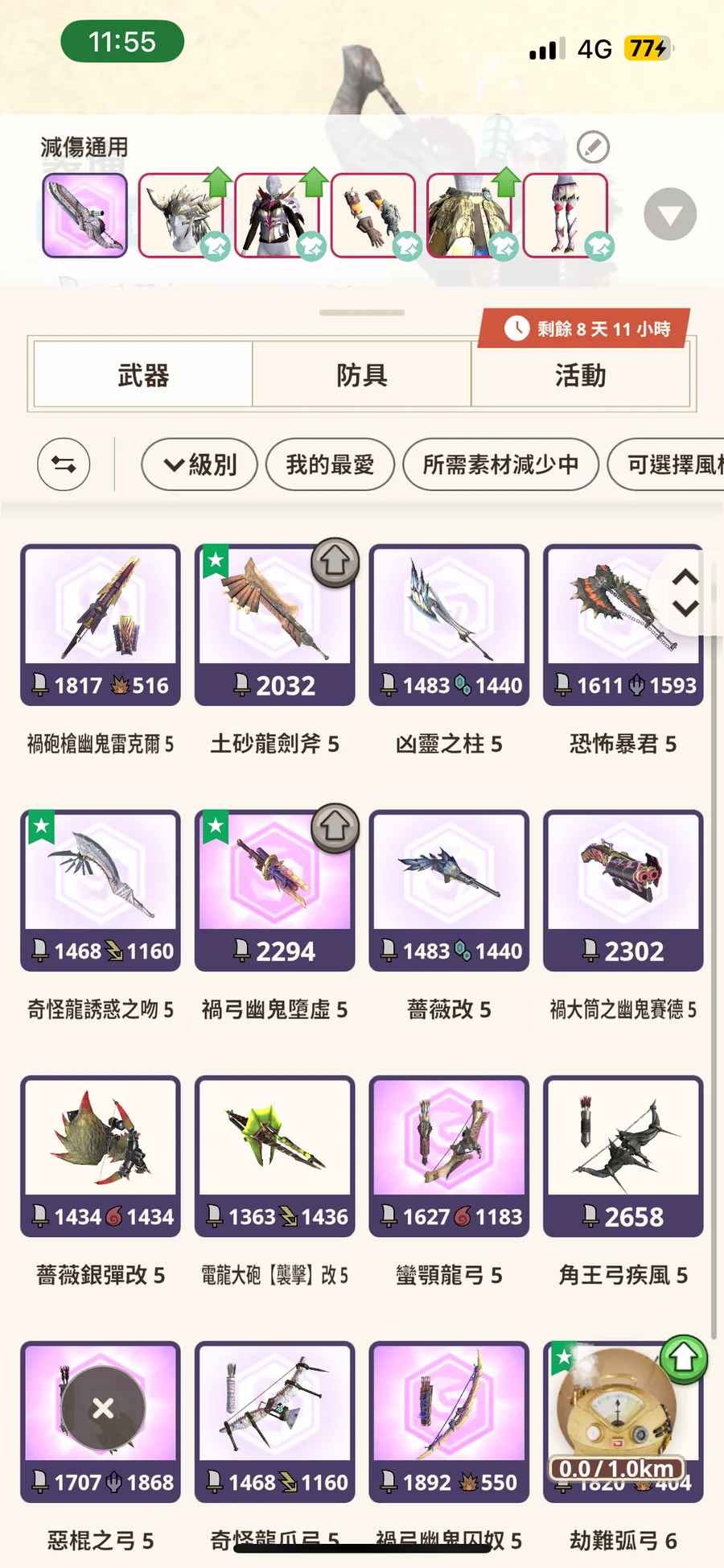 遠程武器(弩)可組後3裝3+連擊2+弱特2套裝,