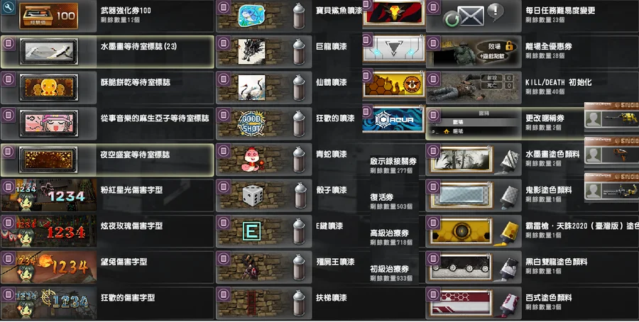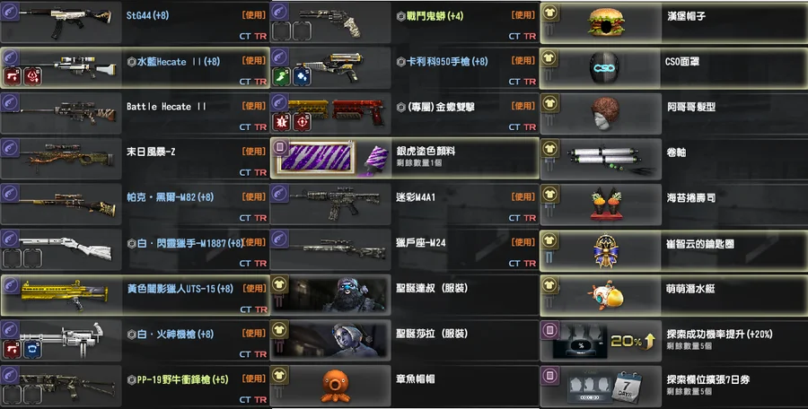 生物學家-艾維亞、優雅貴族-崔智云、打殭強化槍枝、白金之星、多角色