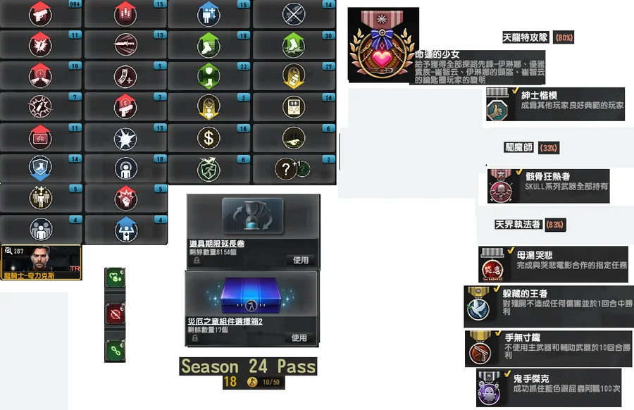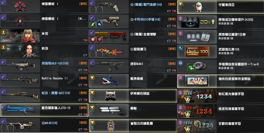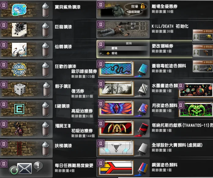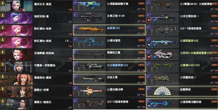 人魚公主-格雷西雅、貴族-崔智云、探路伊琳娜、打殭強化槍枝、愉快的度假等待室標誌