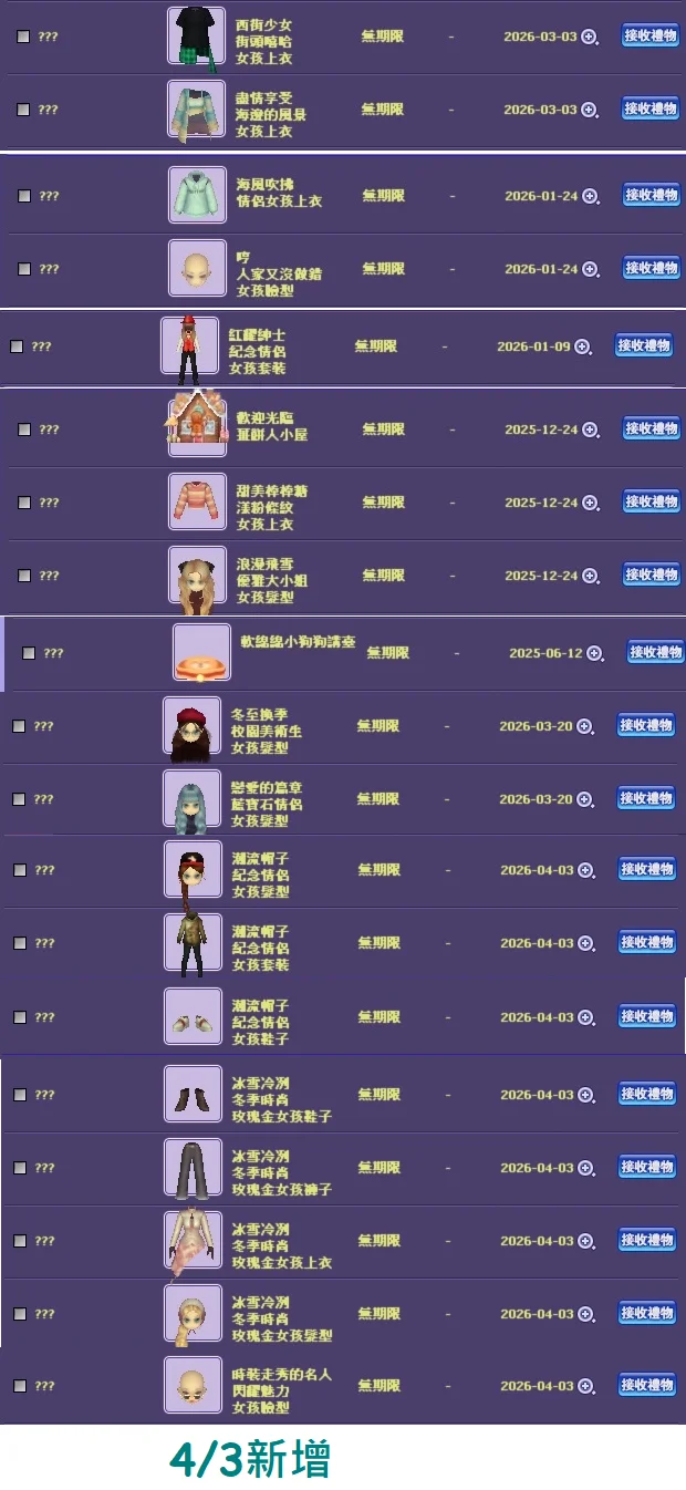 ◎禮物箱還有多種東西未領出