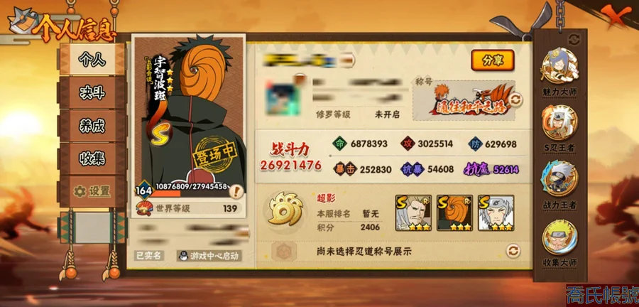 【OBHQTMS488342】戰鬥力:2692W+;段位:超影;本服排名:6;戰區排名:24;VIP14級;S忍49個;A忍74個;通靈獸31個;S忍:仙人模式自來也(5星),綱手(5星),猿飛日斬(5星),大蛇丸(4星),波風水門(4星),穢土轉生三代目風影(4星),初代目風影烈鬥(4星),天道佩恩(4星),暴怒第六尾漩渦鳴人,九喇嘛連結漩渦鳴人,永恆萬花筒宇智波佐助,忍界大戰春野櫻,須佐能乎旗木卡卡西,自來也,舞之豪傑自來也,傳說中的三忍自來也,死門邁特凱,九喇嘛連結波風水門,穢土轉生猿飛日斬,穢土轉生千手扉間,千手扉間,千手柱間,木葉創立千手柱間,穢土轉生千手柱間,穢土轉生宇智波斑,木葉創立宇智波斑,穢土轉生解宇智波斑,須佐能乎宇智波鼬,穢土轉生宇智波鼬,須佐能乎宇智波止水,神秘面具男,白面具宇智波斑,五影會談宇智波斑,忍界大戰宇智波帶土,紅夜之刃神秘面具男,四代目風影羅砂,二代目水影鬼燈幻月,四代目雷影艾,忍界大戰艾,三代目雷影艾,三代目土影大野木,忍界大戰大野木,二代目土影無,超佩恩天道,穢土轉生長門,仙人模式藥師兜,最終章大筒木舍人,大筒木桃式,大筒木金式;A忍:邁特凱(5星),猿飛阿斯瑪(5星),蠍(5星),幹柿鬼鮫(5星),疾風傳我愛羅(4星),死司憑血飛段(4星),旗木卡卡西(3星),忍界大戰土臺(3星),迪達拉(3星),飛段(3星),六代目水影長十郎(3星),忍者之路神秘面具男,仙人模式漩渦鳴人,初始形態機械鳴人,九尾查克拉漩渦鳴人,萬花筒寫輪眼宇智波佐助,須佐能乎宇智波佐助,疾風傳咒印宇智波佐助,俠隱江湖宇智波佐助,宇智波泉奈,忍界大戰秋道丁次,忍界大戰日向寧次,忍界大戰李洛克,忍界大戰天天,最終章日向雛田,幻之真容旗木卡卡西,忍界大戰旗木卡卡西,青春爆炸邁特凱,宇智波止水,新春限定宇智波止水,志村團藏,新春限定波風水門,青年波風水門,忍界大戰我愛羅,新春限定我愛羅,近松十人衛千代,俠隱江湖照美冥,五代目水影照美冥,漂泊武士桃地再不斬,穢土轉生桃地再不斬,奇拉比,忍界大戰奇拉比,青年艾,三船,漂泊武士千手扉間,不緣,青年長門,漂泊浪客佩恩六道,小南,夏日泳裝小南,漂泊浪客小南,新春限定小南,角都,地怨虞角都,穢土轉生角都,曉大蛇丸,新春限定大蛇丸,緋流琥蠍,宇智波鼬,新春限定宇智波鼬,穢土轉生迪達拉,新春限定迪達拉,惡靈之影飛段,暴怒宇智波帶土,漂泊浪客宇智波帶土,加藤斷,俠隱江湖大野木,羈絆神農,猿飛木葉丸,桃式顯現漩渦博人,五代目雷影達魯伊,仙人模式巳月,四代目土影黑土,夏日限定黑土;通靈獸:忍犬,藍蛇,蛤蟆吉,忍龜,鐮鼬,猿魔,山椒魚,蜃,蛞蝓,蛤蟆仙人,鮫鯊,蛤蟆健,砂之守鶴,烏鴉,熊貓,蛤蟆龍,二尾又旅,,蛤蟆廣,怒鬼無臂,萬蛇,夢貘,鷹,怒鬼爪,蜘蛛,祥瑞金烏,守鶴,辛牙,怒鬼,變色龍;時裝:桀驁之刃猿飛阿斯瑪,百戰宇智波鼬須佐能乎,狂野鮫鯊幹柿鬼鮫,蜀面豪傑舞之豪傑自來也,鋼鐵之軀邁特凱,百戰波風水門,百戰佩恩天道,百戰大蛇丸,斑之附身神秘面具男忍者之路,龍吟浪客千手扉間漂泊武士,燼影絕蹤宇智波佐助俠隱江湖,太極靈韻日向花火武當宗師,烈土霓裳黑土四代目土影,土之固守大野木三代目土影,憤怒的伊始宇智波帶土暴怒,編織虛實宇智波鼬,龍的傳人李洛克截拳宗師,風靈素錦猿飛未來,菁英忍者旗木卡卡西少年,水之妖姬照美冥五代目水影,命定之戰宇智波佐助疾風傳,智勇記者宇智波佐良娜,千雪霜華照美冥俠隱江湖,神使之花小南新春限定,緋櫻綻放春野櫻百豪,隱藏內心的面具旗木卡卡西暗部,血紅辣椒旋渦玖辛奈少女png,血霧怪人幹柿鬼鮫,驚雷掠影達魯伊五代目雷影,可愛睡衣漩渦鳴人,飛瀑流泉長十郎六代目水影,傳說的光芒波風水門,風之守護我愛羅忍界大戰,剎那的藝術迪達拉,紅月映雪宇智波鼬新春限定,雷電之力艾四代目雷影,初代目火影千手柱間,純白之心白,睿勇新星千手扉間少年,熊貓少女天天峨眉宗師;【2092】博聞錄已買,月卡已經續了,能把六道帶土秒出來