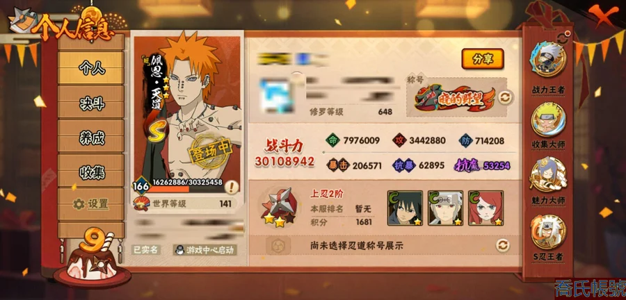 【OBHQTMS522042】戰鬥力:3010W+;段位:上忍2階;本服排名:3;戰區排名:30;VIP15級;S忍54個;A忍87個;通靈獸28個;S忍:仙人模式自來也(5星),綱手(5星),猿飛日斬(5星),大蛇丸(4星),波風水門(4星),木葉創立宇智波斑(4星),須佐能乎宇智波鼬(4星),初代目風影烈鬥(4星),穢土轉生三代目風影(4星),三代目土影大野木(4星),天道佩恩(4星),暴怒第六尾漩渦鳴人,九喇嘛連結漩渦鳴人,永恆萬花筒宇智波佐助,忍界大戰春野櫻,須佐能乎旗木卡卡西,自來也,舞之豪傑自來也,傳說中的三忍自來也,百豪綱手,死門邁特凱,穢土轉生波風水門,九喇嘛連結波風水門,穢土轉生猿飛日斬,千手扉間,穢土轉生千手扉間,千手柱間,穢土轉生千手柱間,木葉創立千手柱間,宇智波斑,穢土轉生宇智波斑,穢土轉生解宇智波斑,穢土轉生宇智波鼬,須佐能乎宇智波止水,神秘面具男,白面具宇智波斑,五影會談宇智波斑,忍界大戰宇智波帶土,紅夜之刃神秘面具男,四代目風影羅砂,二代目水影鬼燈幻月,四代目雷影艾,忍界大戰艾,三代目雷影艾,穢土轉生金角銀角,穢土轉生半藏,二代目土影無,忍界大戰大野木,超佩恩天道,穢土轉生長門,仙人模式藥師兜,最終章大筒木舍人,大筒木桃式,大筒木金式;A忍:邁特凱(5星),猿飛阿斯瑪(5星),蠍(5星),幹柿鬼鮫(5星),死司憑血飛段(5星),疾風傳我愛羅(4星),飛段(4星),仙人模式漩渦鳴人(3星),忍界大戰日向寧次(3星),旗木卡卡西(3星),青年波風水門(3星),五代目水影照美冥(3星),忍界大戰奇拉比(3星),青年艾(3星),忍界大戰土臺(3星),青年長門(3星),宇智波鼬(3星),迪達拉(3星),穢土轉生迪達拉(3星),猿飛木葉丸(3星),初始形態機械鳴人,忍者之路神秘面具男,九尾查克拉漩渦鳴人(3星),萬花筒寫輪眼宇智波佐助,須佐能乎宇智波佐助,疾風傳咒印宇智波佐助,俠隱江湖宇智波佐助,宇智波泉奈,百豪春野櫻,忍界大戰秋道丁次,忍界大戰李洛克,最終章日向雛田,幻之真容旗木卡卡西,萬花筒寫輪眼旗木卡卡西,忍界大戰旗木卡卡西,青春爆炸邁特凱,七夕限定猿飛阿斯瑪,宇智波止水,新春限定宇智波止水,志村團藏,火影繼承人猿飛日斬,新春限定波風水門,忍界大戰我愛羅,新春限定我愛羅,近松十人衛千代,俠隱江湖照美冥,夏日泳裝照美冥,漂泊武士桃地再不斬,穢土轉生桃地再不斬,桃地再不斬,奇拉比,青年三船,俠隱江湖綱手,妖怪奇譚綱手,漂泊武士千手扉間,半蛇斗篷藥師兜,俠隱江湖藥師兜,不風,不緣,不動,漂泊浪客佩恩六道,小南,漂泊浪客小南,新春限定小南,絕,曉創生角都,角都,地怨虞角都,穢土轉生角都,曉大蛇丸,新春限定大蛇丸,緋流琥蠍,新春限定宇智波鼬,夏日限定宇智波鼬,新春限定迪達拉,阿飛,惡靈之影飛段,暴怒宇智波帶土,漂泊浪客宇智波帶土,加藤斷,俠隱江湖大野木,火之意志繼承者卑留呼,羈絆神農,桃式顯現漩渦博人,五代目雷影達魯伊,六代目水影長十郎,四代目土影黑土;通靈獸:忍犬,藍蛇,蛤蟆吉,忍龜,蛞蝓,鐮鼬,猿魔,山椒魚,蜃,蛤蟆仙人,鮫鯊,蛤蟆健,烏鴉,熊貓,蛤蟆龍,蛤蟆廣,砂之守鶴,二尾又旅,夢貘,鷹,蜘蛛,九尾九喇嘛,守鶴,萬蛇,,辛牙,蛞蝓俠隱江湖;時裝:狂野鮫鯊幹柿鬼鮫,蜀面豪傑舞之豪傑自來也,百戰佩恩天道,百戰大蛇丸,桀驁之刃猿飛阿斯瑪,鋼鐵之軀邁特凱,百戰宇智波鼬須佐能乎,百戰波風水門,冷玉豪情綱手俠隱江湖,詭刃寒芒藥師兜俠隱江湖,龍吟浪客千手扉間漂泊武士,太極靈韻日向花火武當宗師,滄瀾狂侍佩恩·六道漂泊浪客,雷電之力艾四代目雷影,飛瀑流泉長十郎六代目水影,智勇記者宇智波佐良娜,傳說的光芒波風水門,風之守護我愛羅忍界大戰,純白之心白,菁英忍者旗木卡卡西少年,水之妖姬照美冥五代目水影,編織虛實宇智波鼬,可愛睡衣漩渦鳴人,龍的傳人李洛克截拳宗師,緋櫻綻放春野櫻百豪,血霧怪人幹柿鬼鮫,血紅辣椒旋渦玖辛奈少女png,剎那的藝術迪達拉,命定之戰宇智波佐助疾風傳,土之固守大野木三代目土影,熊貓少女天天峨眉宗師,烈土霓裳黑土四代目土影,火之意志綱手百豪,神使之花小南新春限定,初代目火影千手柱間,憤怒的伊始宇智波帶土暴怒,風靈素錦猿飛未來,驚雷掠影達魯伊五代目雷影,隱藏內心的面具旗木卡卡西暗部,睿勇新星千手扉間少年,驕陽翠羽照美冥夏日泳裝;【1635】v15 本服榜三 全S忍者 一月高招s可秒
