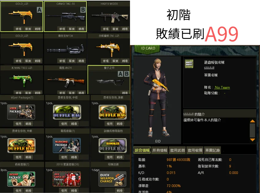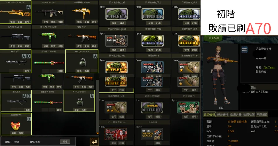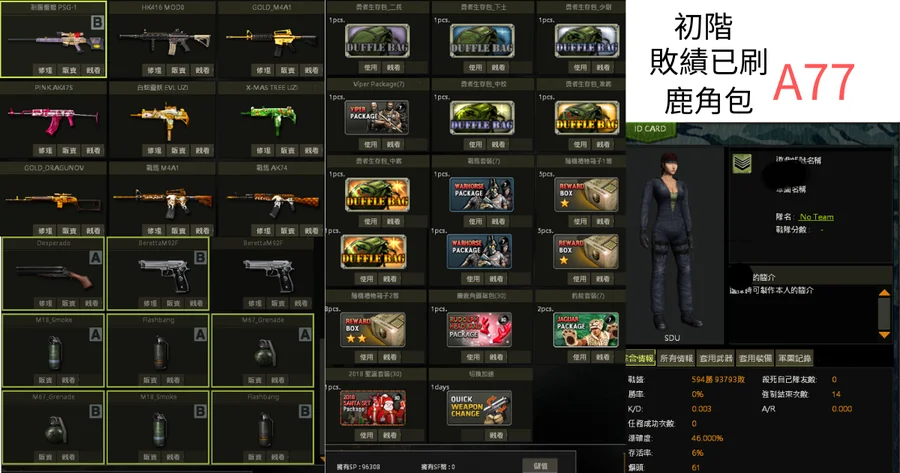 【制服psg,黃金m4,粉紅AK,戰馬m4,戰馬AK,黃金svd,聖誕uzi,白蛇uzi,鹿角包】