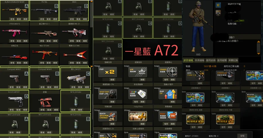【黑龍m4,粉紅AK,龍魂psg,war stg44,電魂吉他,台灣之光,鎮魂曲】