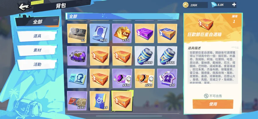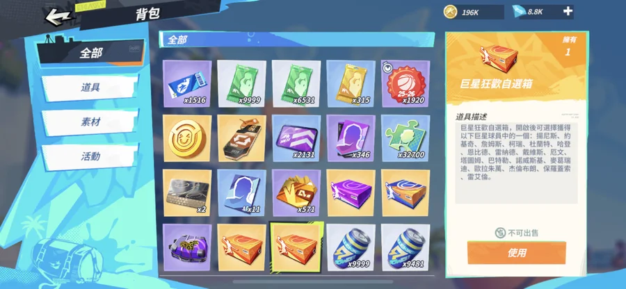 派對新秀*1,巨星球員自選箱*4(未開)、回歸時裝自選箱*1、街頭明星自選箱*1(換傅值用)