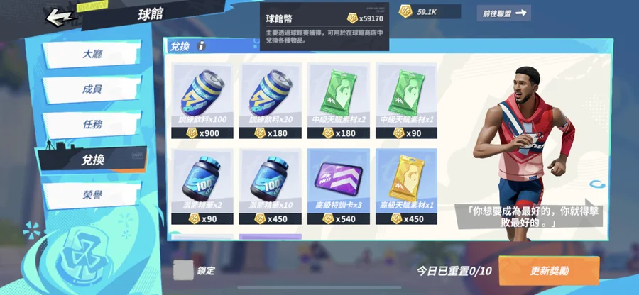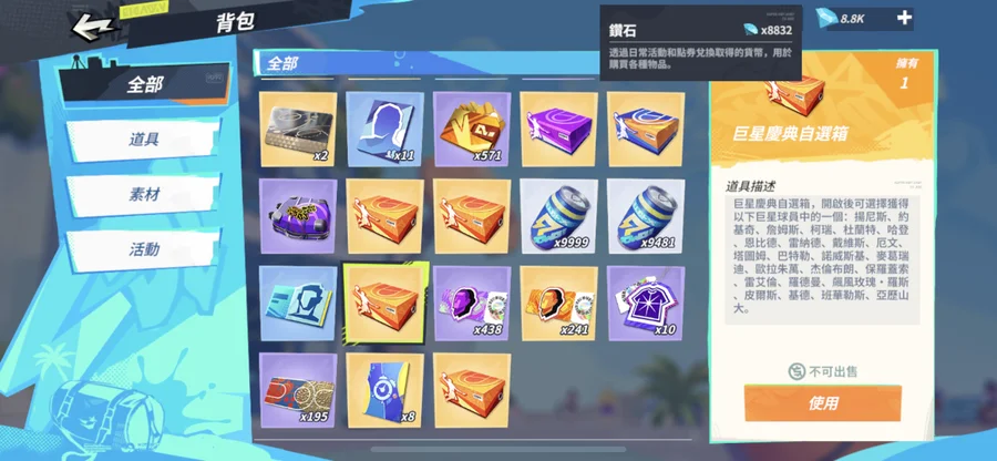 定向招募:12/8號可抽、鑽石:8612、球館幣:58,170(可換大頭卡)