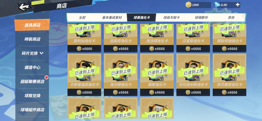 巨星登場:241張(+鑽石保底三次)、大頭卡571張,可以點28技能、球員碎片32700+冷卻卡共有54,900(可換4隻突破角)