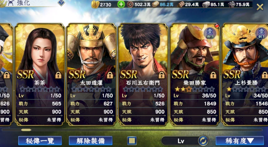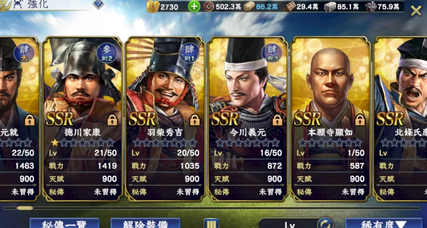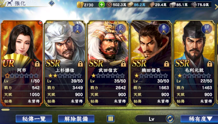 【22等】214上杉.武田.織田.有穩定毛利成長 各種900將