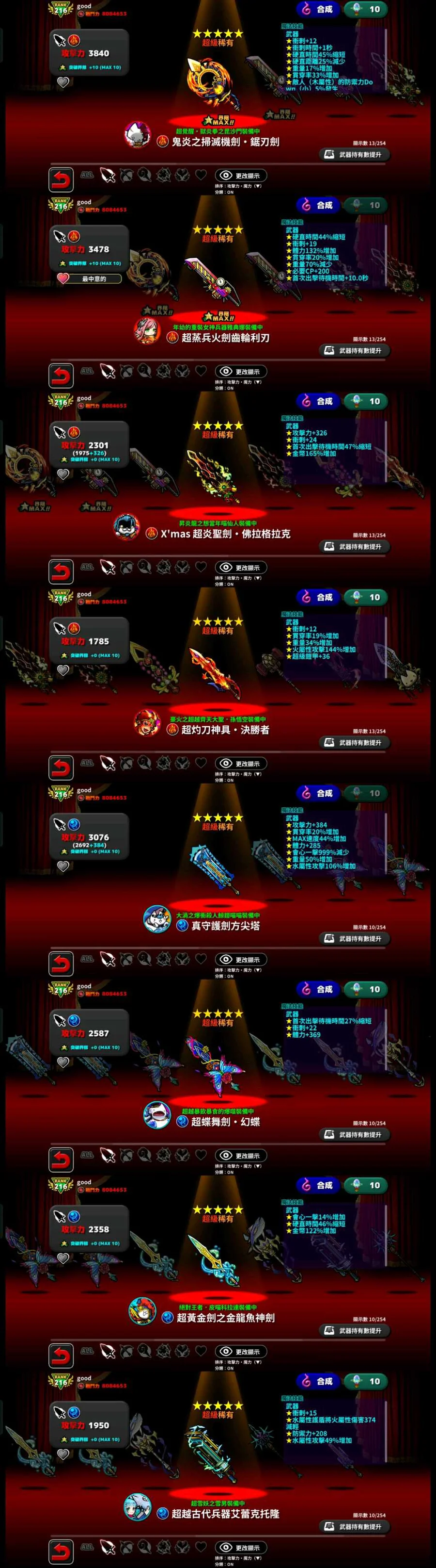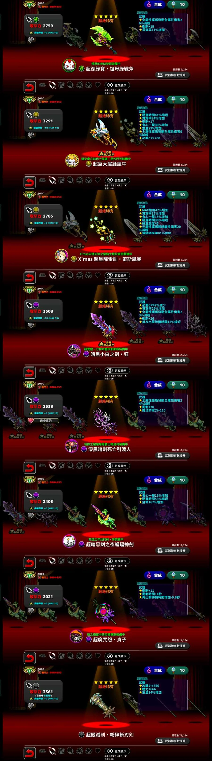 【216等】10限定以及多種武器,專武已備齊,賤價出售,不議價