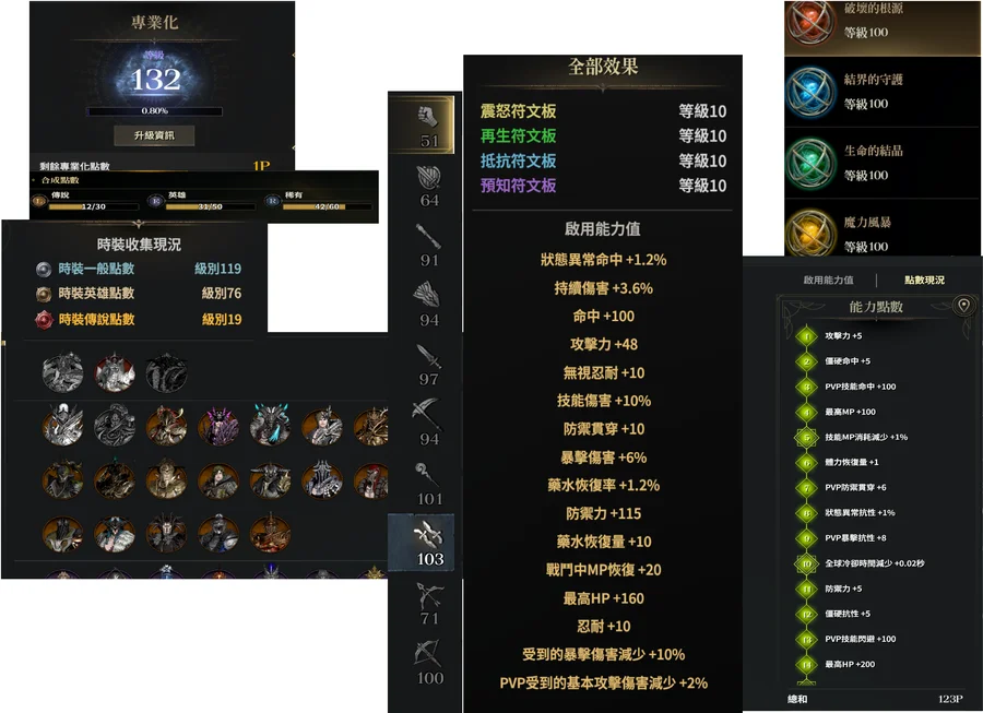 短劍103級,弩100級,手杖101級