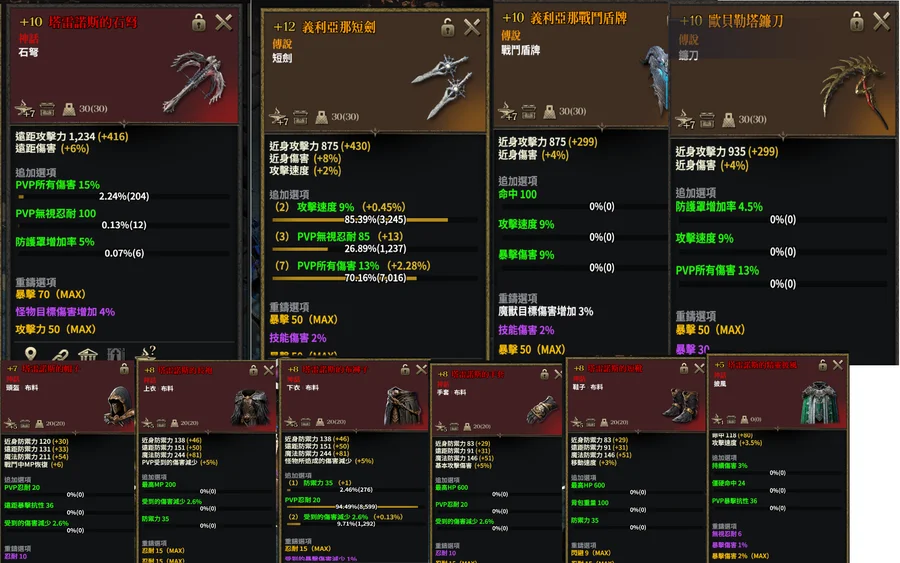 +10塔雷諾斯石弩,+12義利亞那短劍,