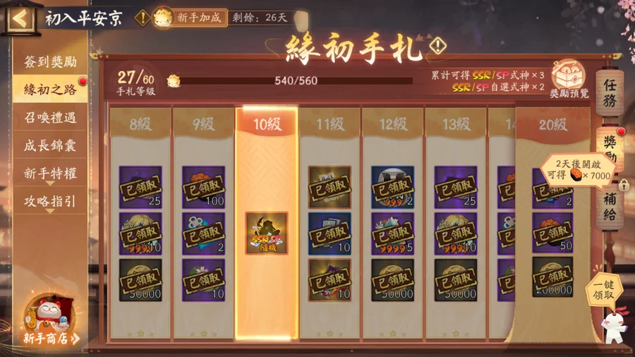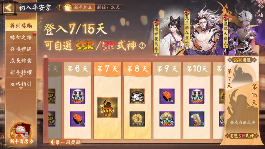 新手成長福利每日登入可得珍貴獎勵7/15限定自選SSR/SP未觸發