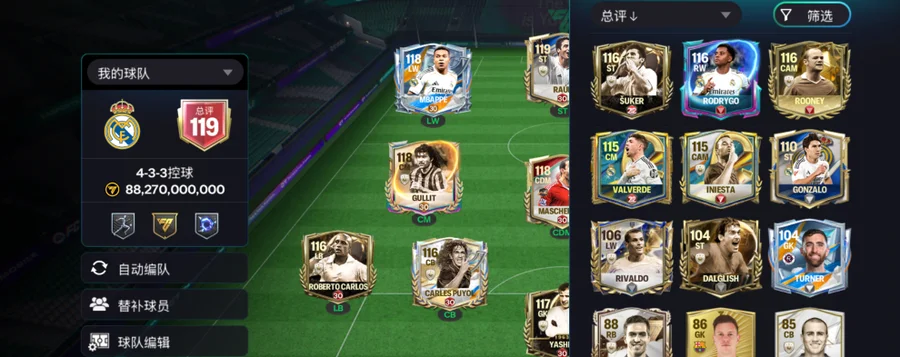 【FMODW1202】賬號類型:EA 賬號|cmobile 國際服賬號,總評 115 皇馬徽章,424 陣型,工會每週保底 1w 鑽石,目前賬號上有 7 億金幣,1500 綠點,隊長活動換了孫,貝爾,弗蘭,未出之前活動每天都跟,可換綁,可小刀, 詳情看圖【自主截圖】