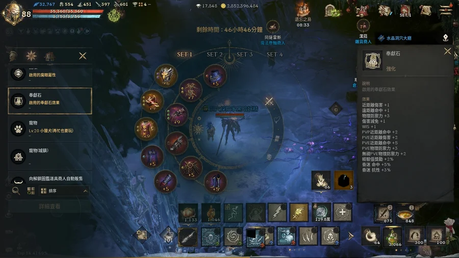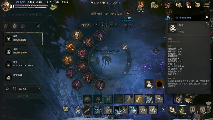 【素質】:血量35,360、攻/命397/601、防/魔防554/451、減傷/PVP減傷196/66、暈命/抗暈26/134%