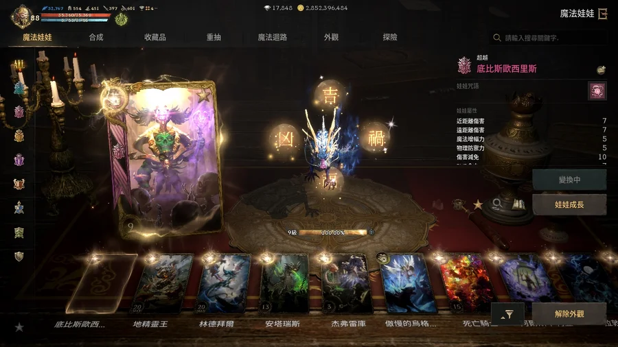 【娃娃收藏】: 收集卡片(69.57%)、完成收藏品(49.63%)