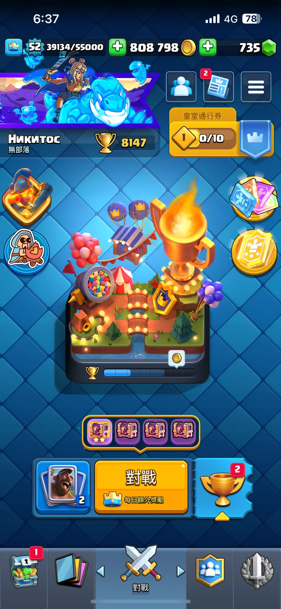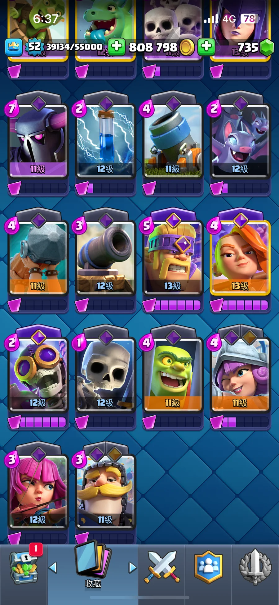 金幣總共高達 80萬 寶石數有735 勇者卡還沒開