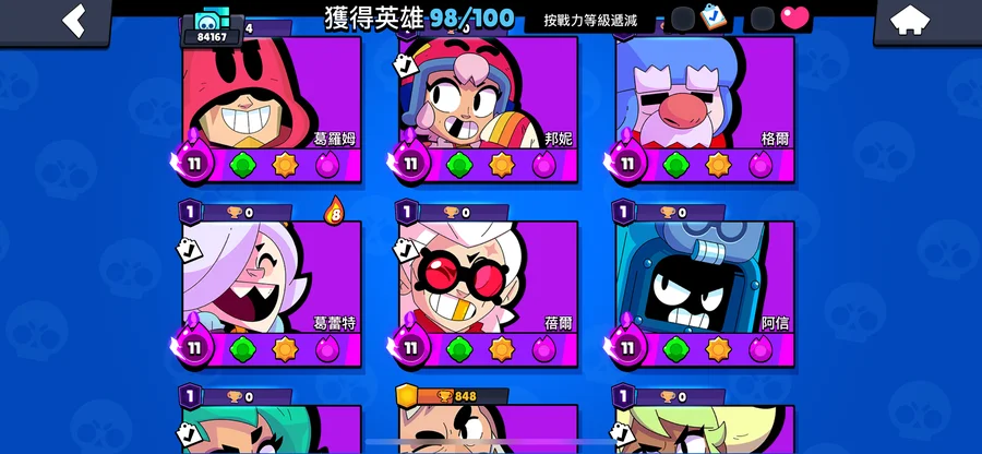 所有有的角色都滿等滿威能!