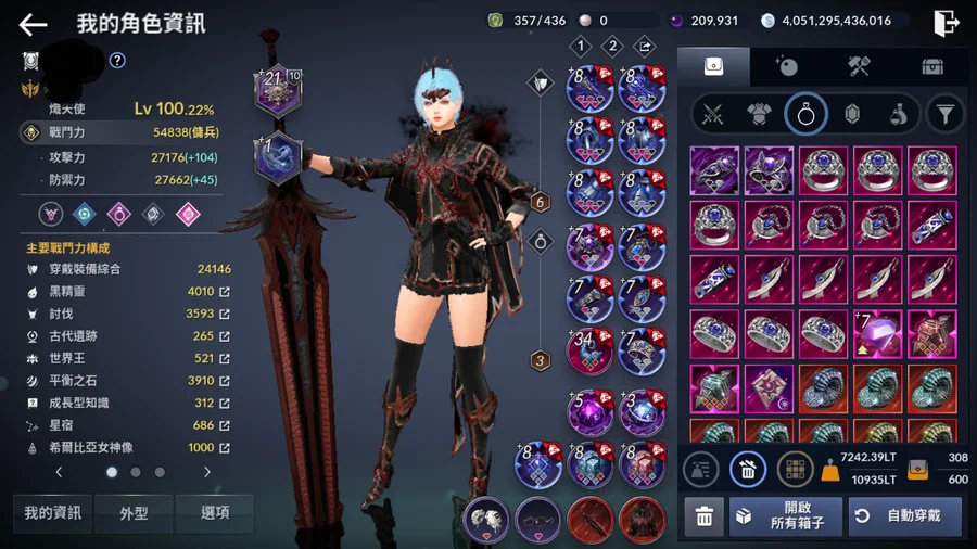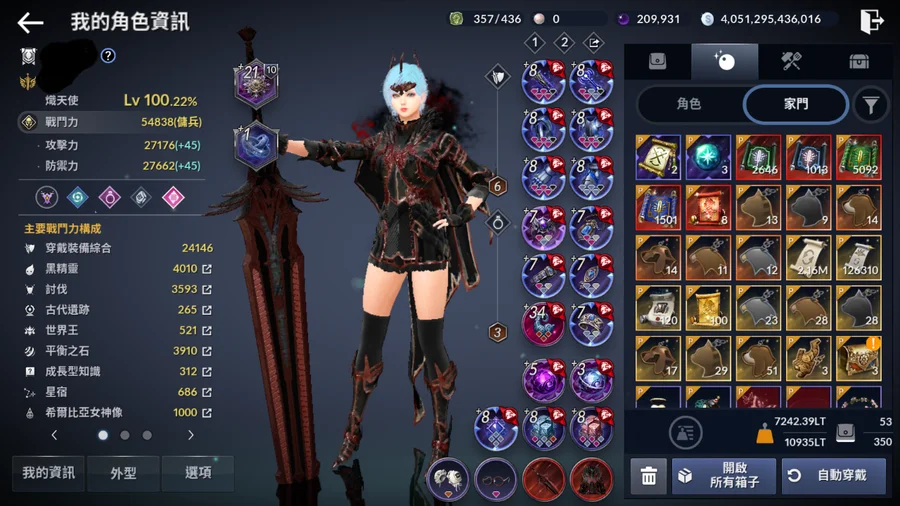 裝備全套+8 飾品全套+7 突破216萬 領地9階段 銀幣4兆 黑珍珠20萬 高資源 至少三年以上資源