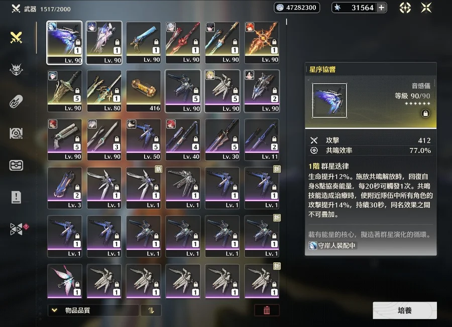 角色聲骸練度幾乎都有雙爆以上,背包內強化素材還留很多