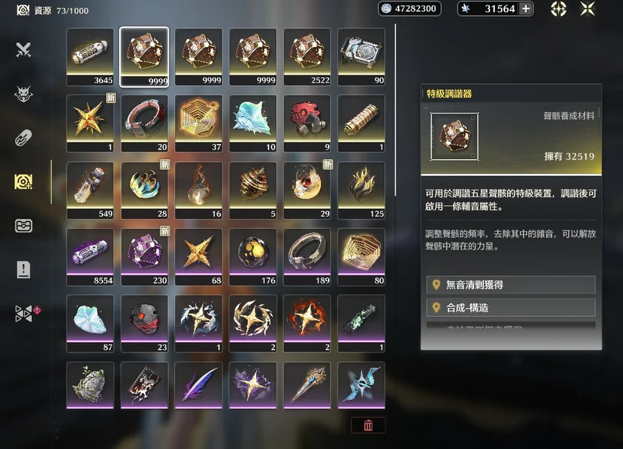 背包有4000萬貝幣+30000調諧器+90調頻儀+3500金密音筒