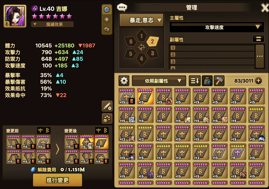 一速219(精滿可破220) 暴意188 絕意177