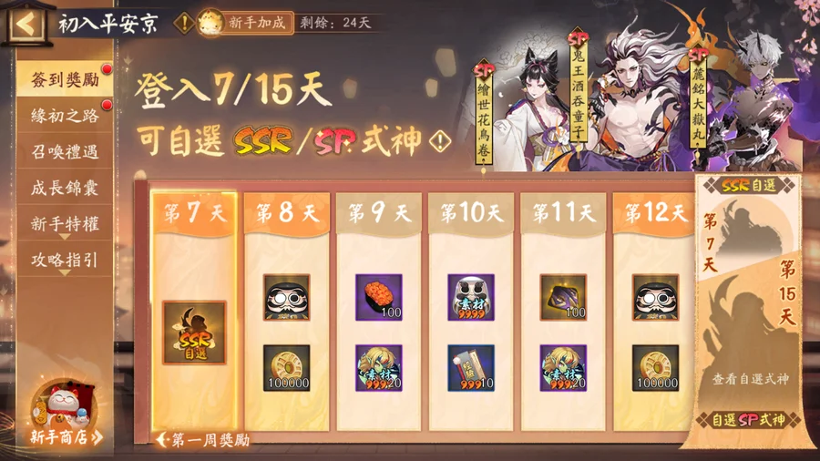 新手成長福利每日登入可得珍貴獎勵7/15限定自選SSR/SP未觸發
