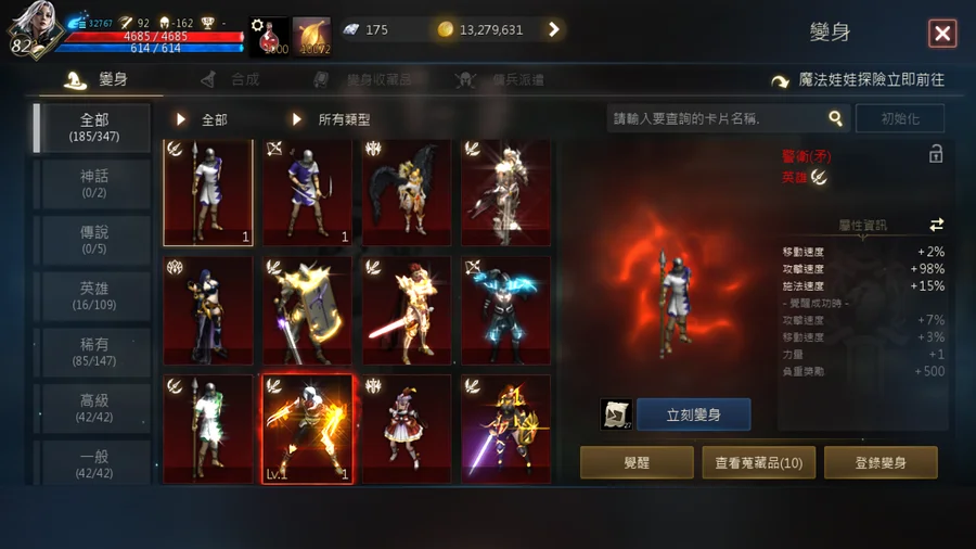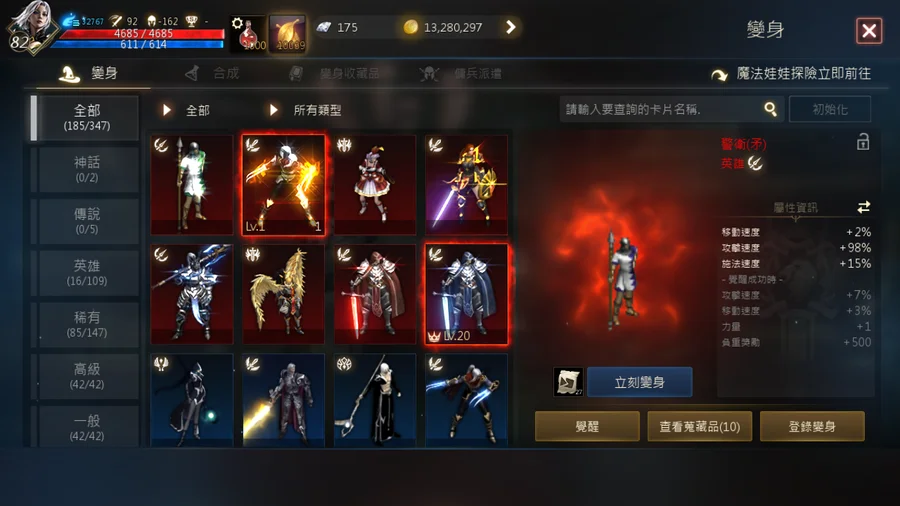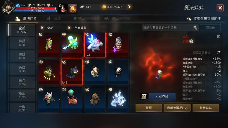 87魔劍3紅技1重複 81暗騎2紅技(有新紅技)