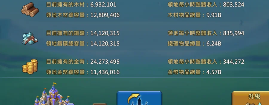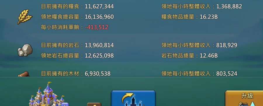 ☆背包資源:糧16B、石12B、木9B、鐵6B、金4B