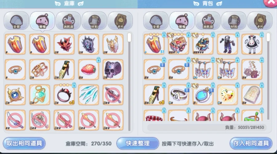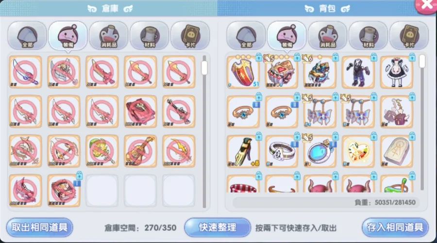 -裝備:達納套改2、110套改3、蜜蜂拳改3、愛的記憶改2、有神官拳套打架裝
