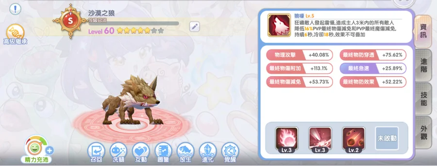 寵物S狼掛機可秒怪、A殭屍打王終傷BUFF破兩百