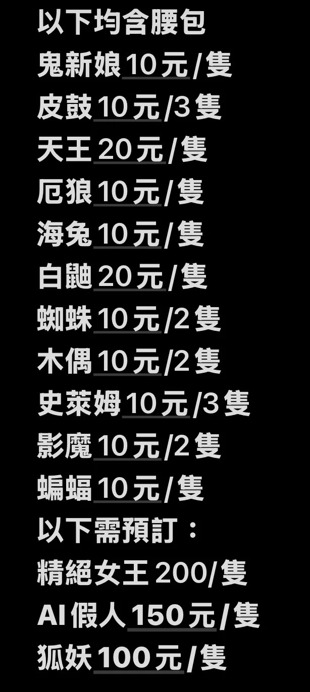 售怪物,不一定有現貨,請聊聊